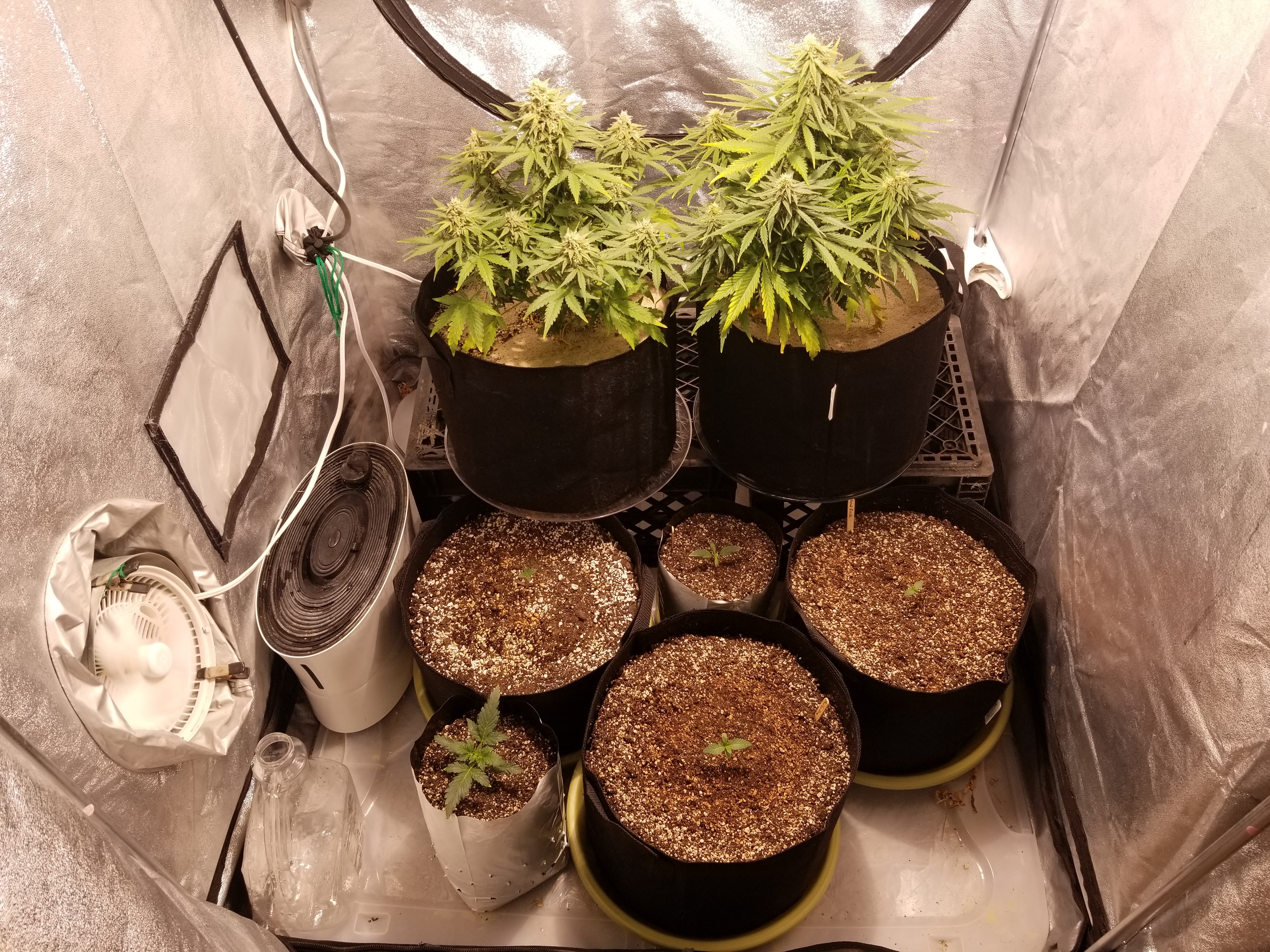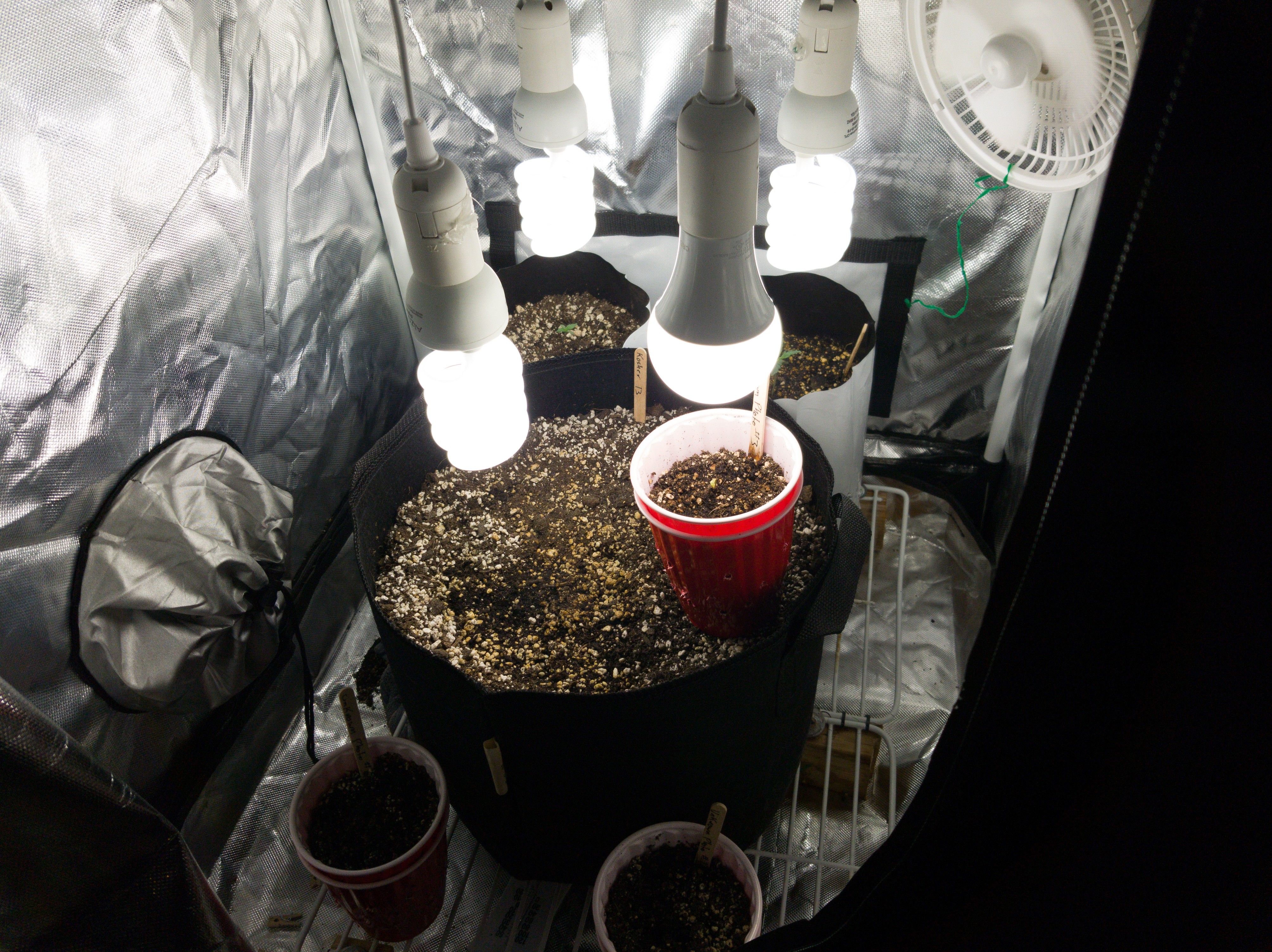My 2x2x4 is really my seedling and early veg tent. I'm currently running 4 6500k and 5000k cfls but am going to have to add some more here shortly.