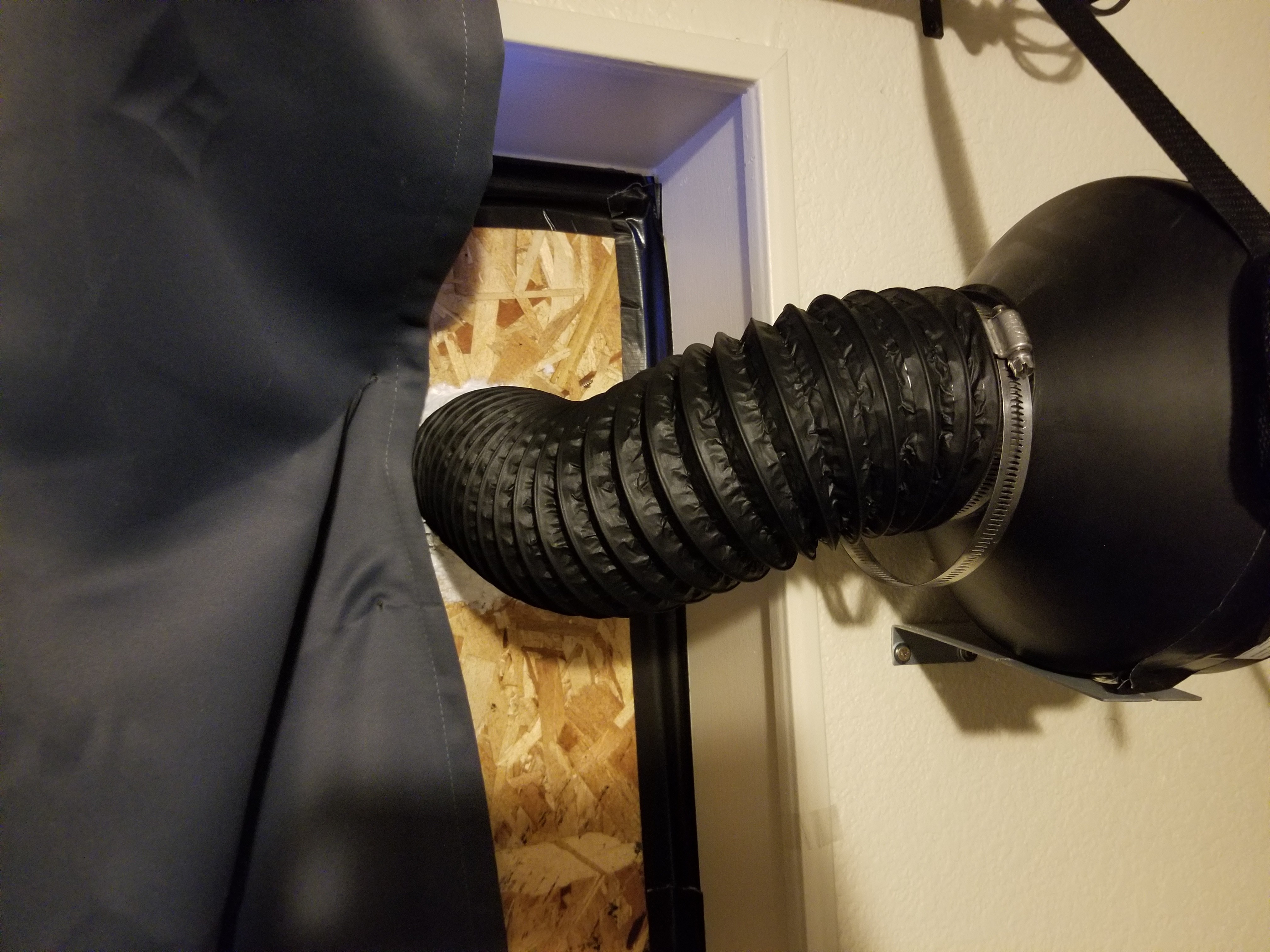 4in 171cfm exhaust pulling through a carbon filter to out a window.