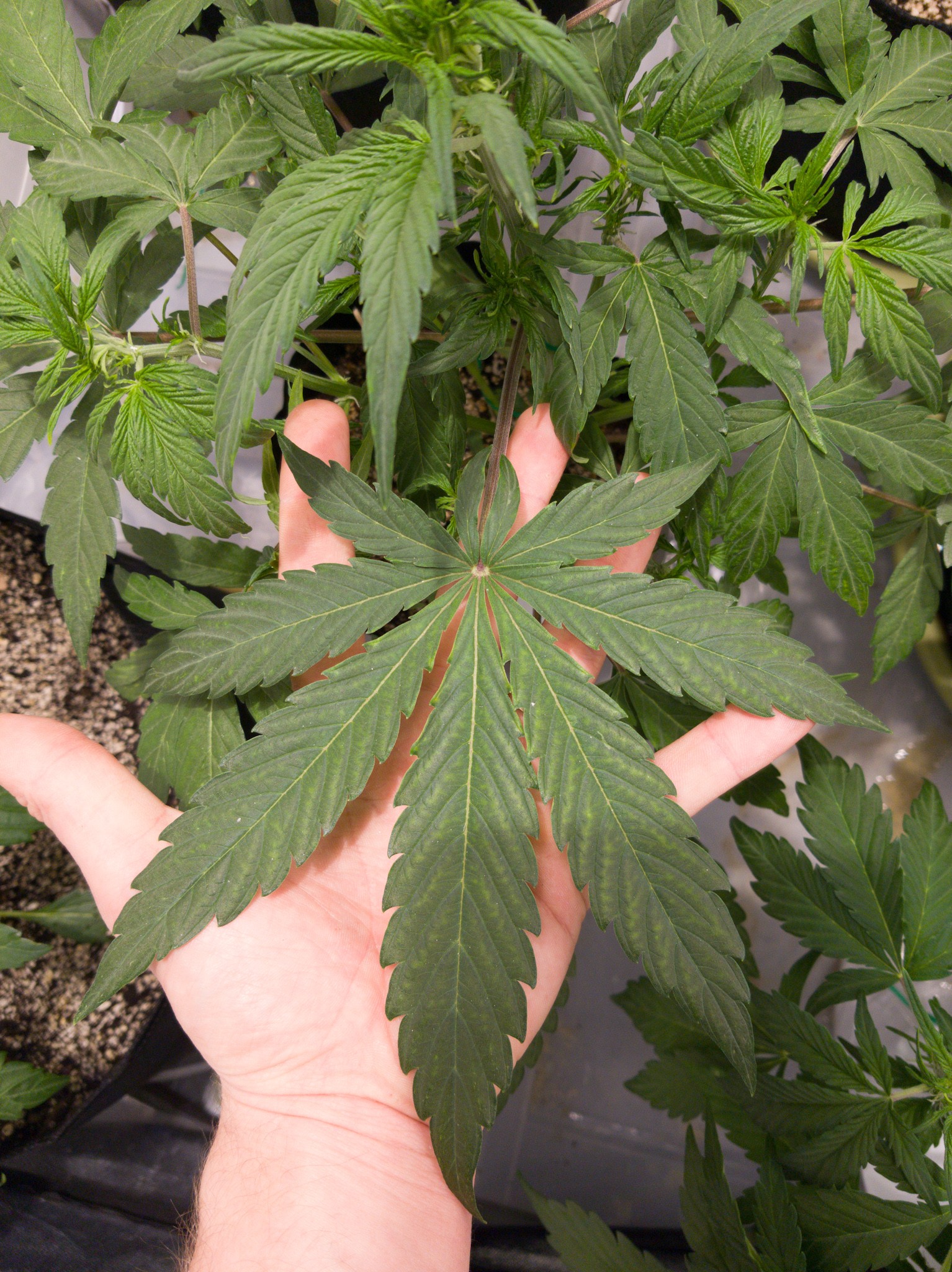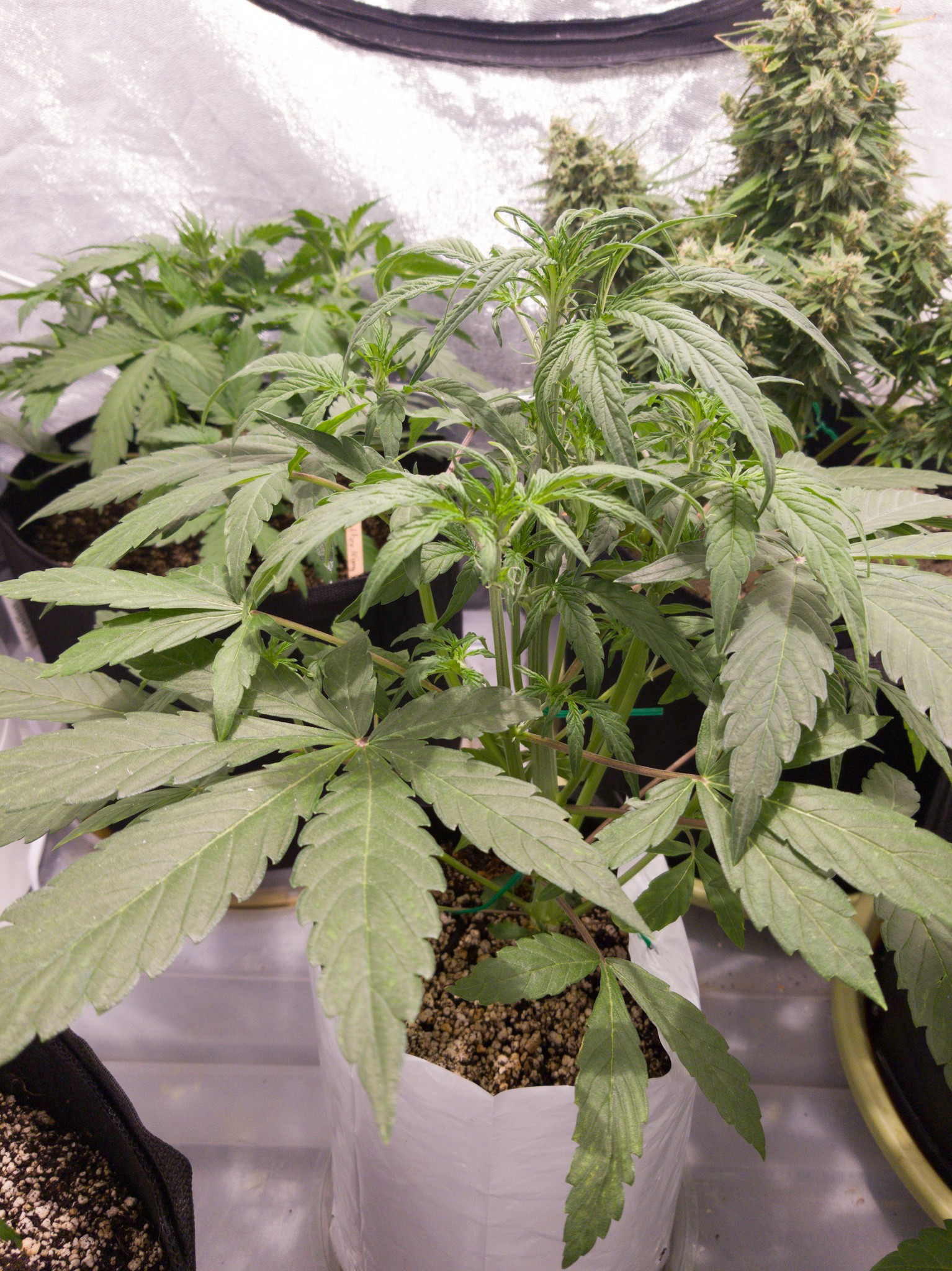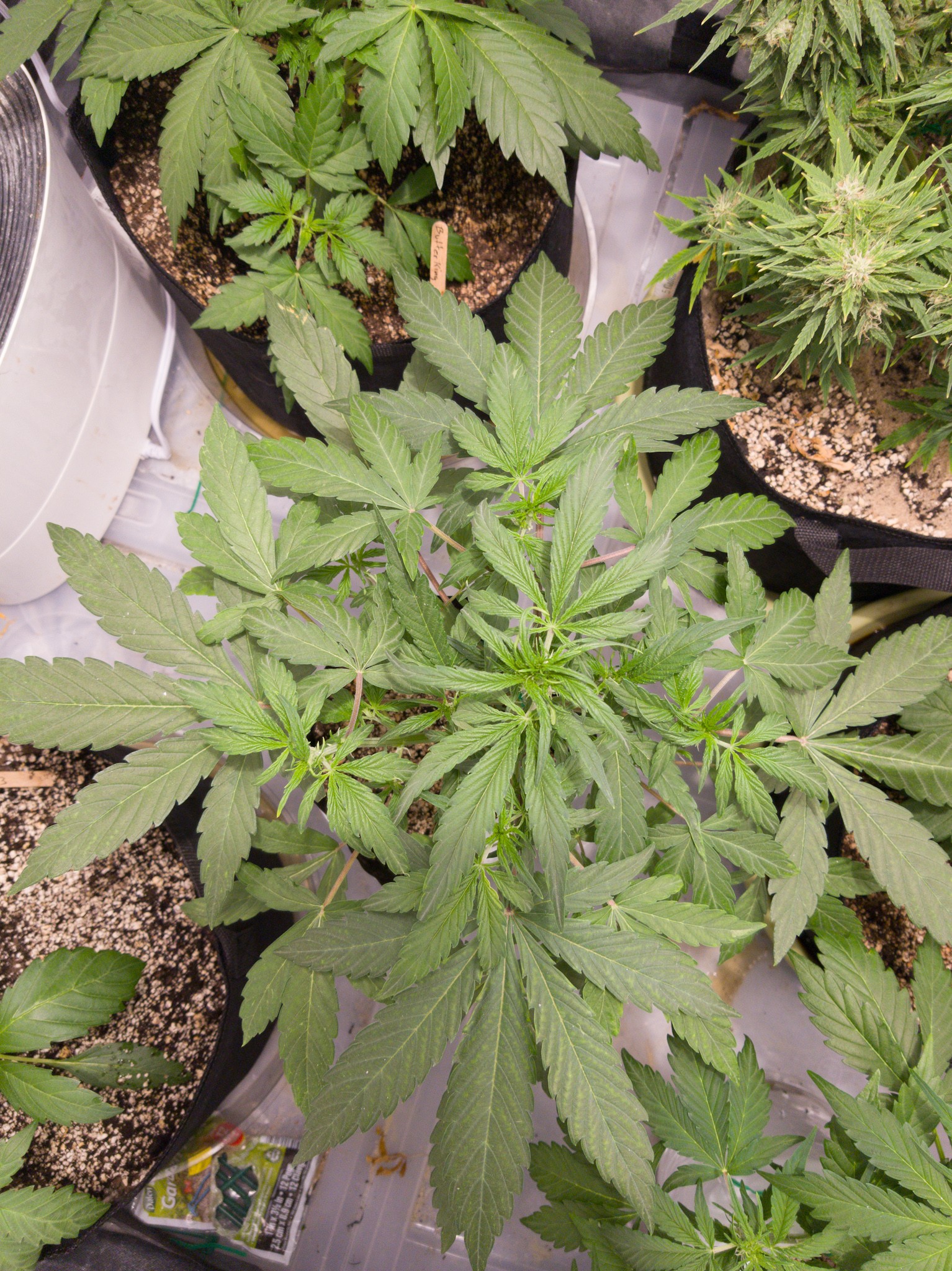 The 2 1 gallons just got their second feeding of flower nutes. the unknown one is showing some kind of deficiency, I think, but it doesn't seem to be having any negative impact on growth.