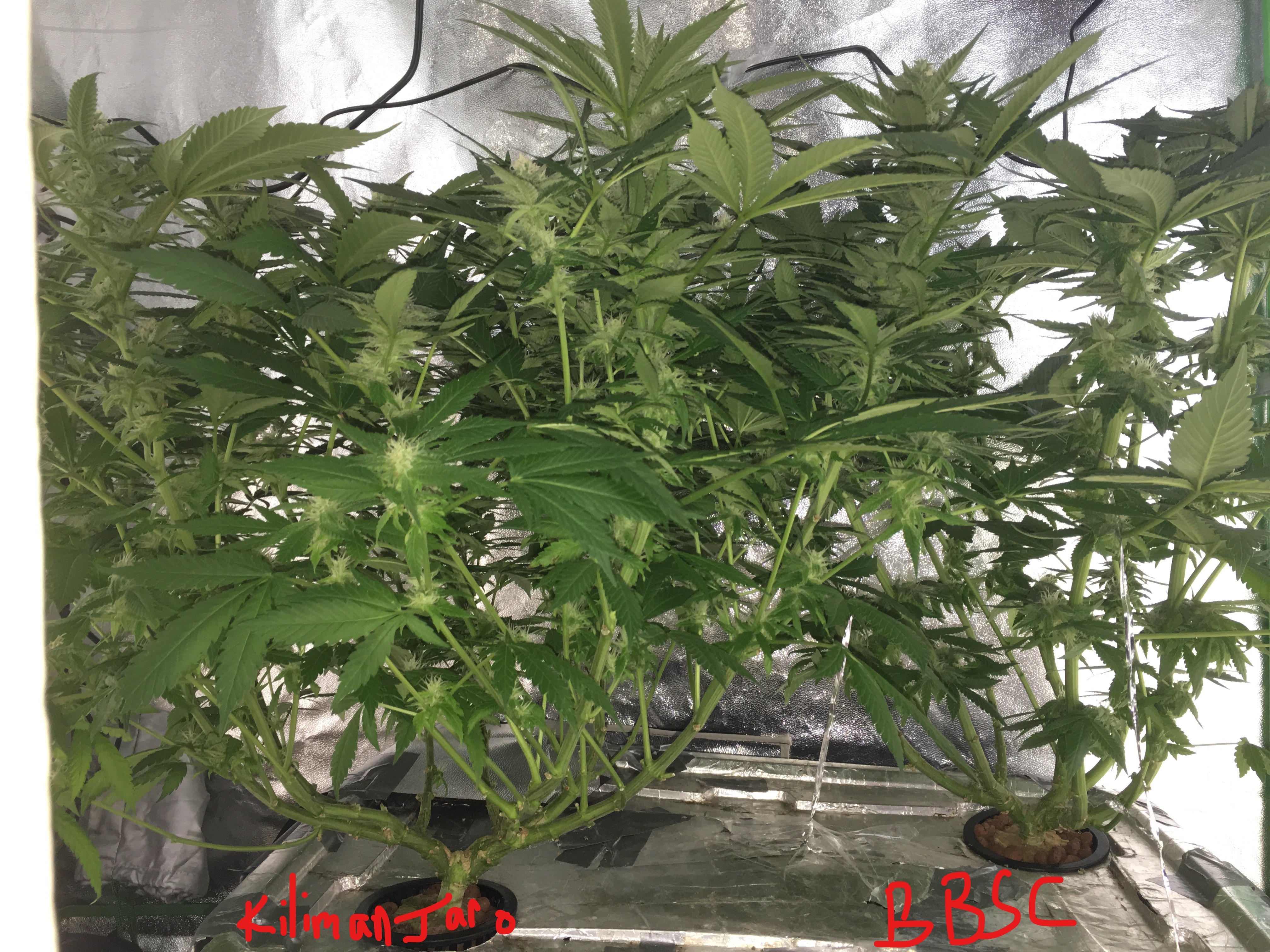mid 6th week of flowering: Now im at the mid of the 6th week of flowering period according to the breeders my strains expected flowering time is 8-10 weeks. What do you think about the progress of my plants? it seems there are no buds or so small little green leafy things between white pistils and BBSC growing different than kilimanjaro, its branches are so thick like 1,5x thicker than kilimanjaro's but it hasnt produced that much bud yet is it normal?