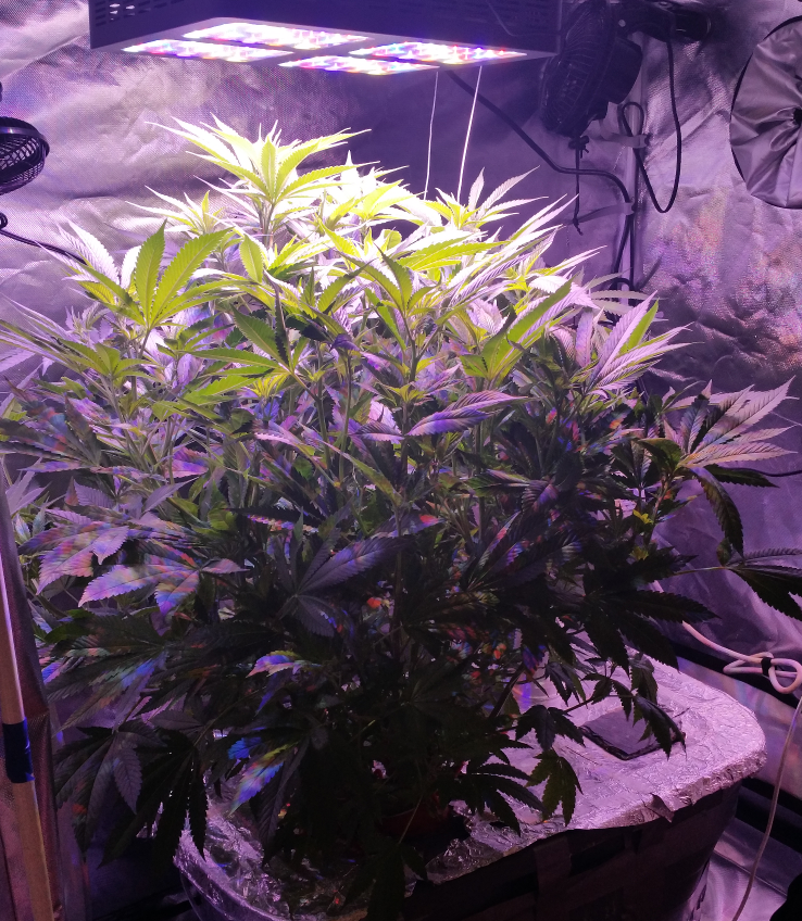 Greetings! Update on my first grow. The plant is really big and bushy. It's starting to crowd itself in the tent. The good news is that I definitely have