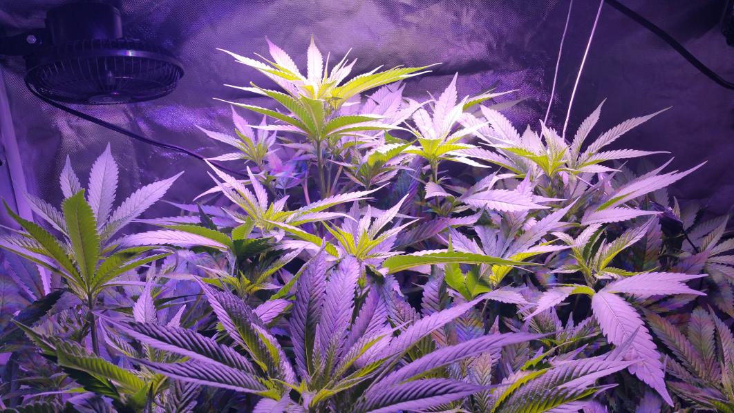 Finally, I'm still sweating vertical space. It looks like vertical growth has slowed down a bit, but that could just be wishful thinking, nevertheless, there is a possibility that this thing won't just jam itself against the roof. But even with that, I don't think I have enough light in the tent to really serve the whole plant.