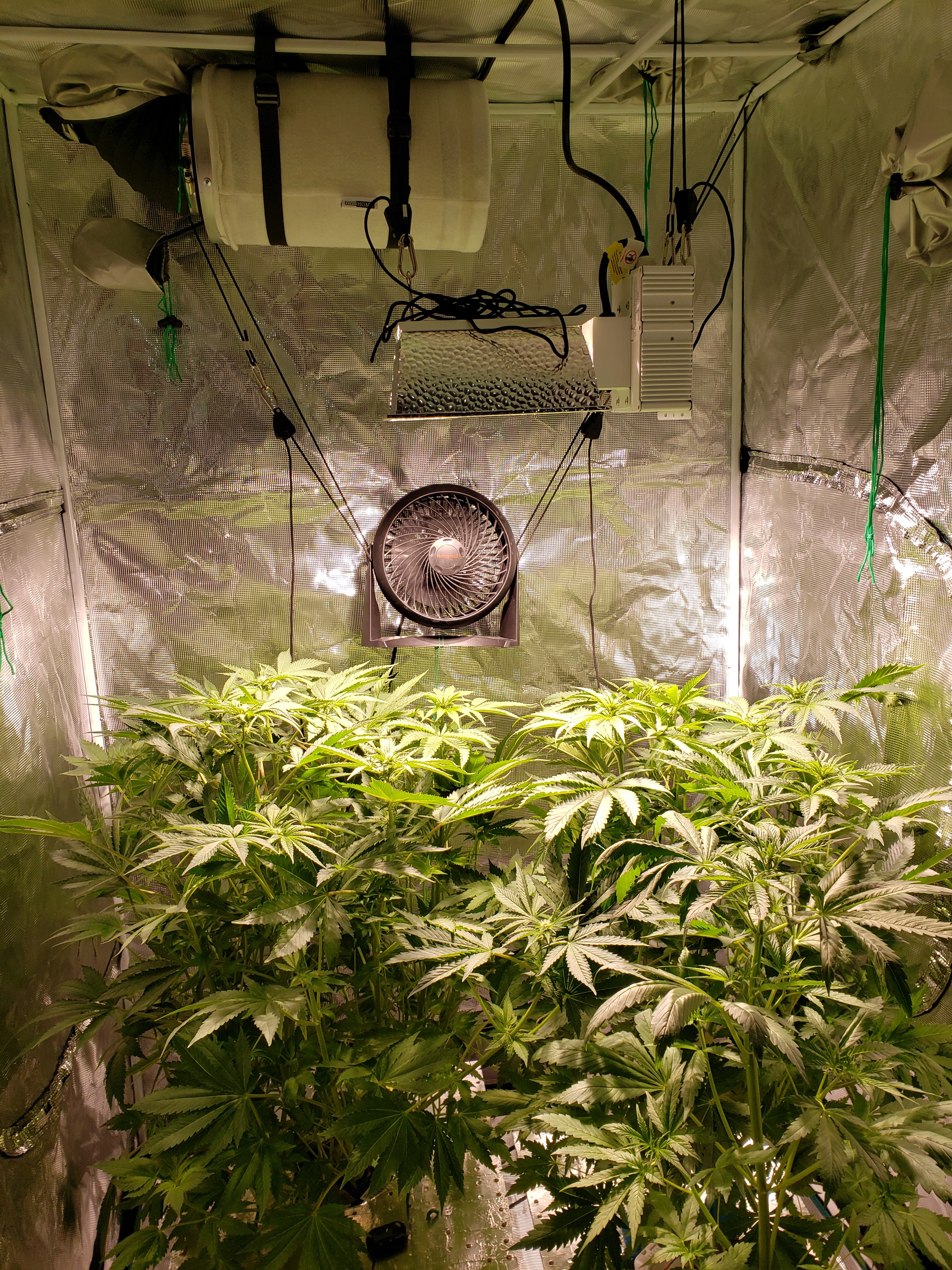 Good to hear the rapid vertical growth will end soon. I need to transfer the two in the 3.5x3.5 to a taller tent because the current 6' ceiling is not high enough. But I mean as far as problems go, massive healthy plant is a good problem to have.