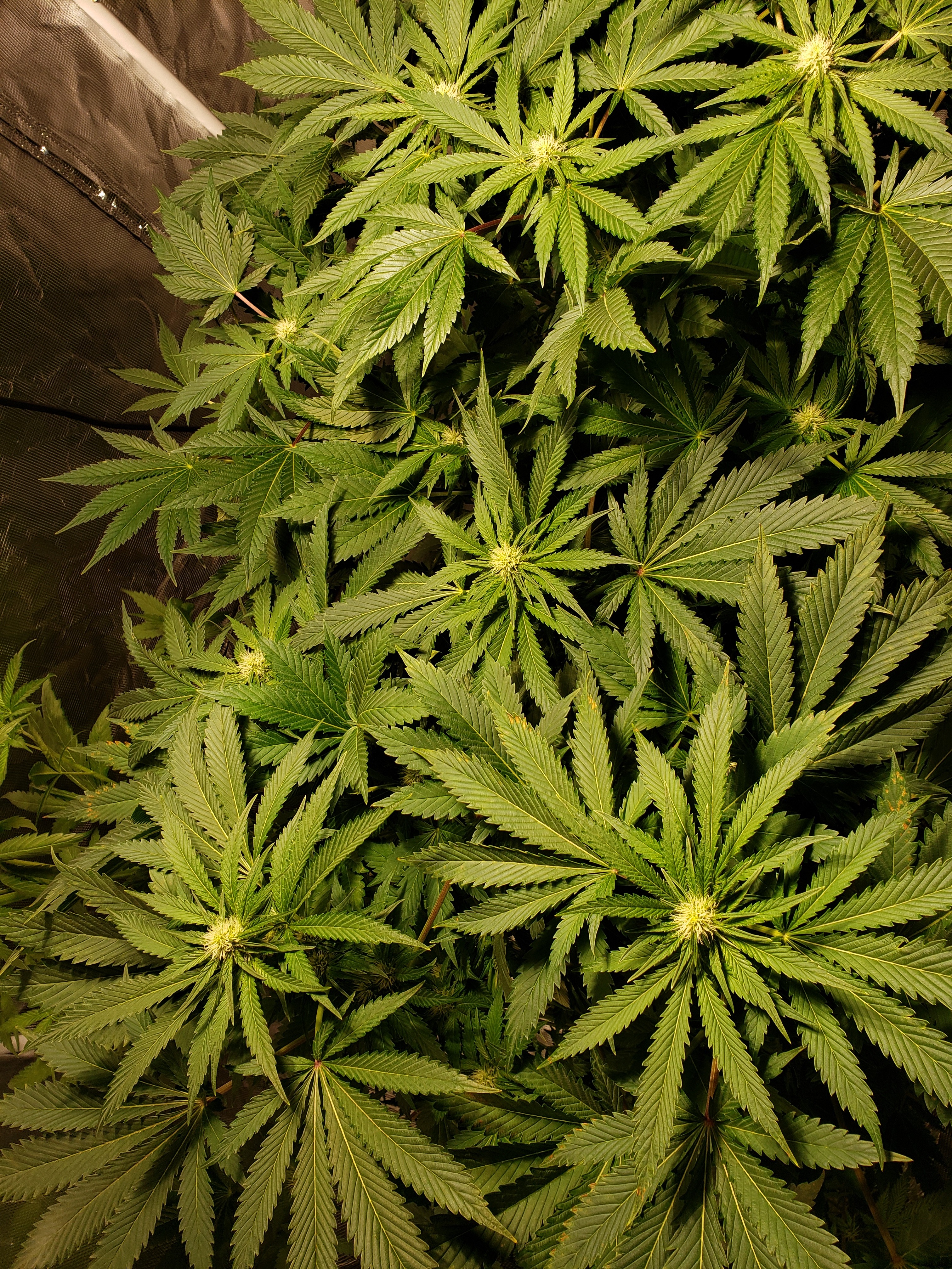 Thanks PRIMO. I'm a but concerned I'll fuck it up if I defoliate. I don't know what I did wrong or maybe I need to do some reading but I tried to lollipop two plants not shown. And I thought once I did that they would start diverting all their energy to making buds. But they ended up making like tons of little leaves and new branches down low. So I just left it because I figured I was hurting yields if it's wasting all this energy on making new leaves.