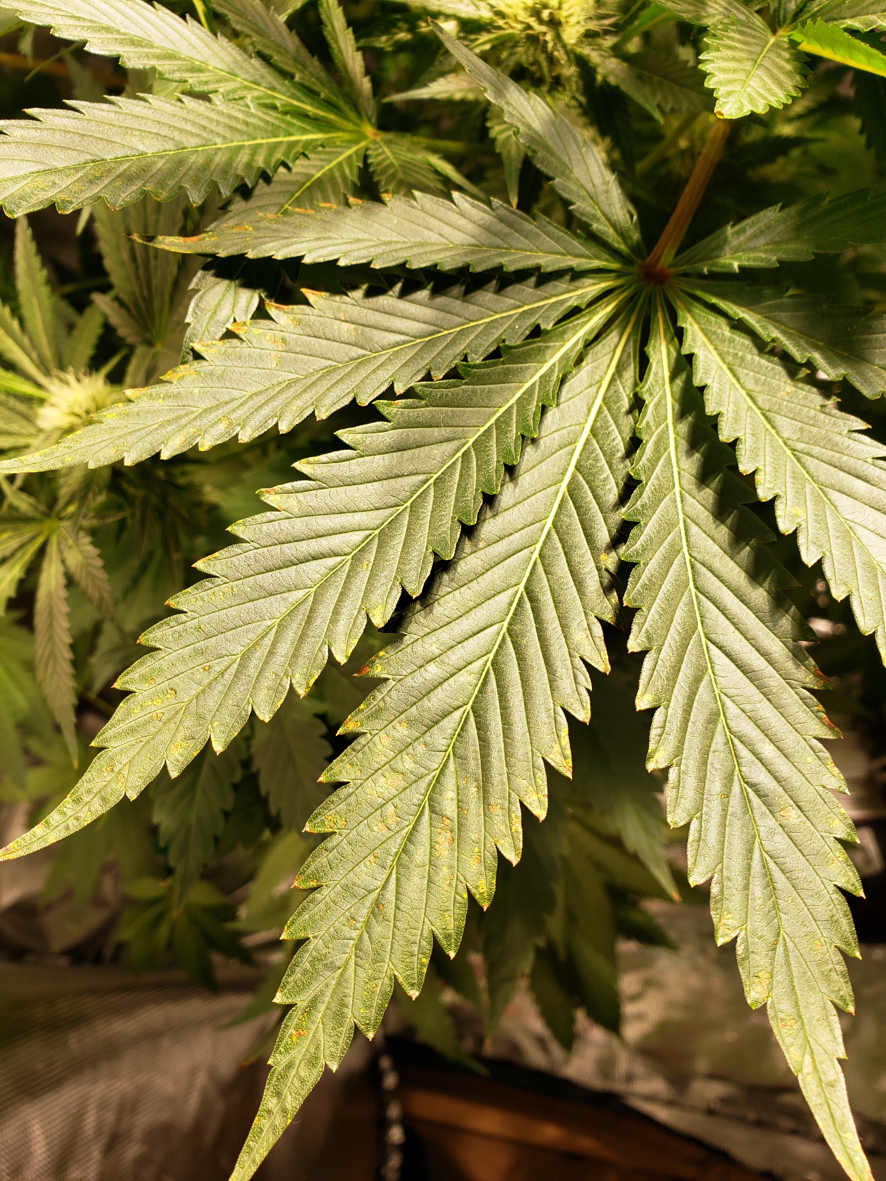 What I'm most concerned about is in the other tent 1/2 plants showing brown edges and spots on most big leaves: