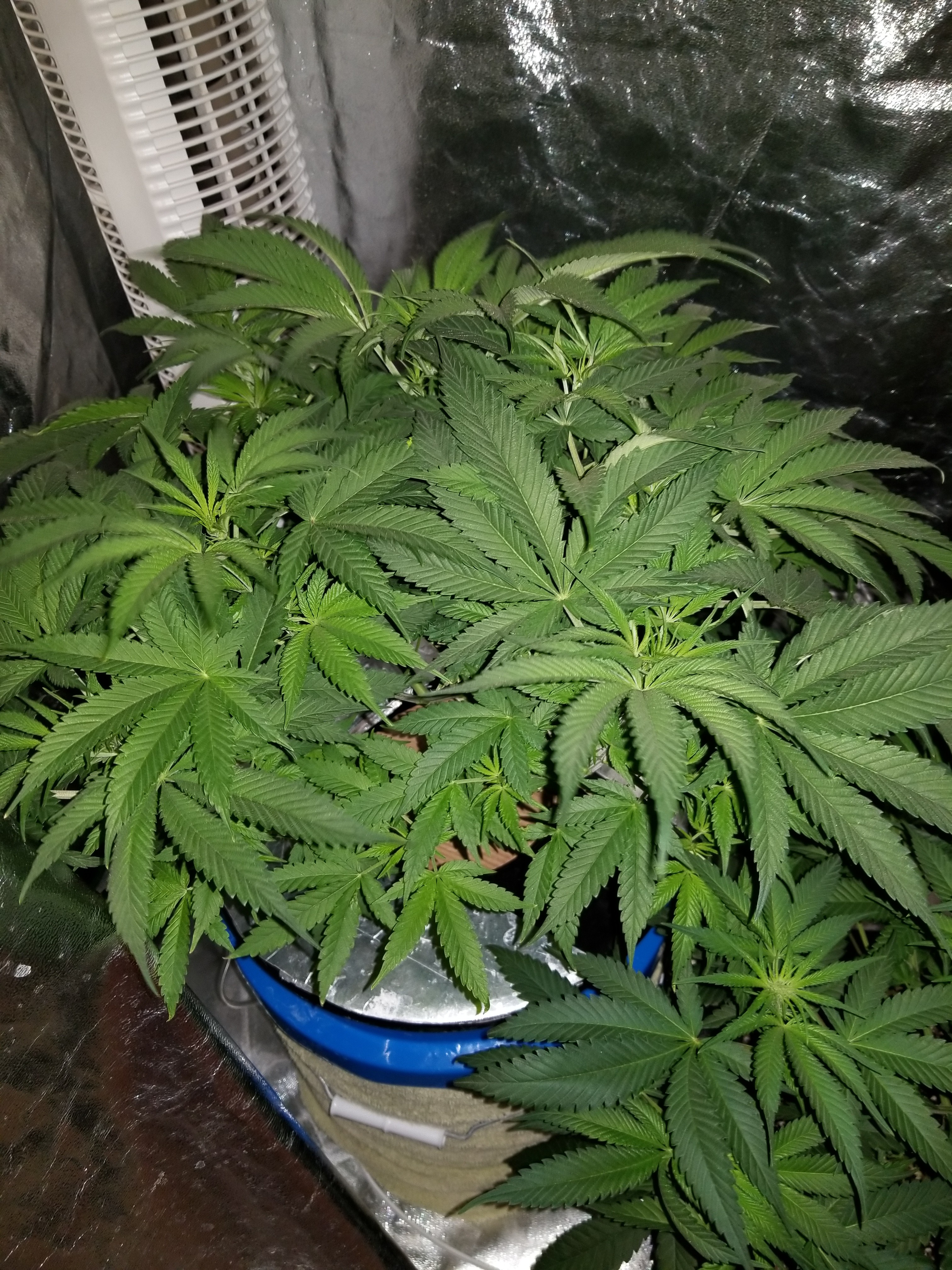 So I'm still waiting on my Fox Farms soil to arrive. Once it does those two soil plants will be transplanted. That said though, I did another flush with Flora Kleen and have only been using RO pH'd water on them. The hydroponic plant is also doing better, its growth is beginning to balance out and look more even.