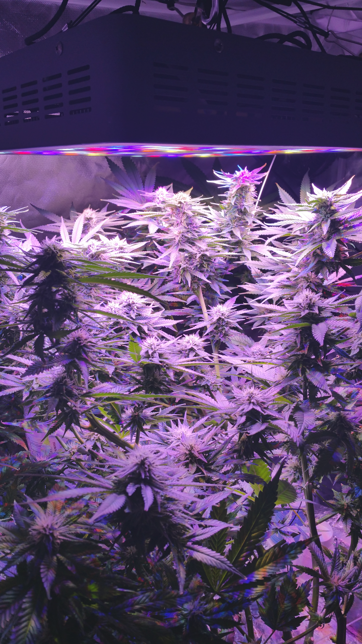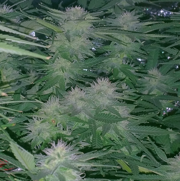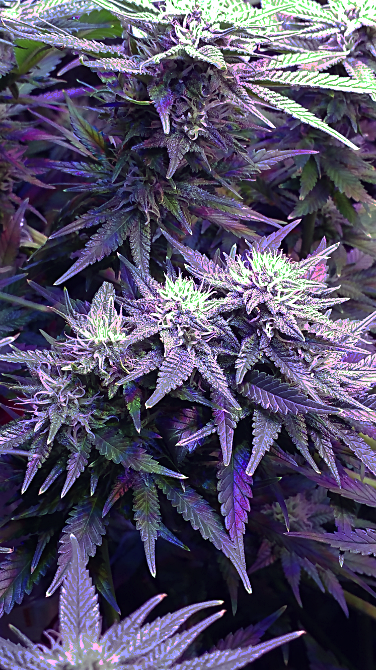 Here is a pic without the grow light on. Trying to show off the enormous pile of trichomes this thing is becoming. This pic does not do the plant justice.