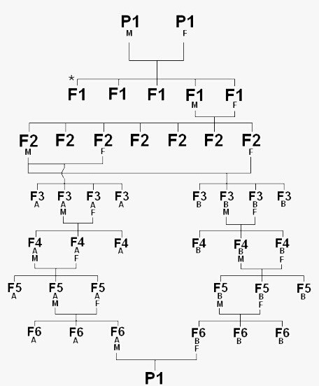 The P1 are the pure land race strains... F1 is the result of breeding 2 p1 land races together. This chart doesn’t show it, but there is F1b also, which is the result of a F1 hybrid x p1 land race. F3...f4...f5... and so on are all the results of hybrid breeding. The further you go along in the generations, the more phenotypes you will typically see.