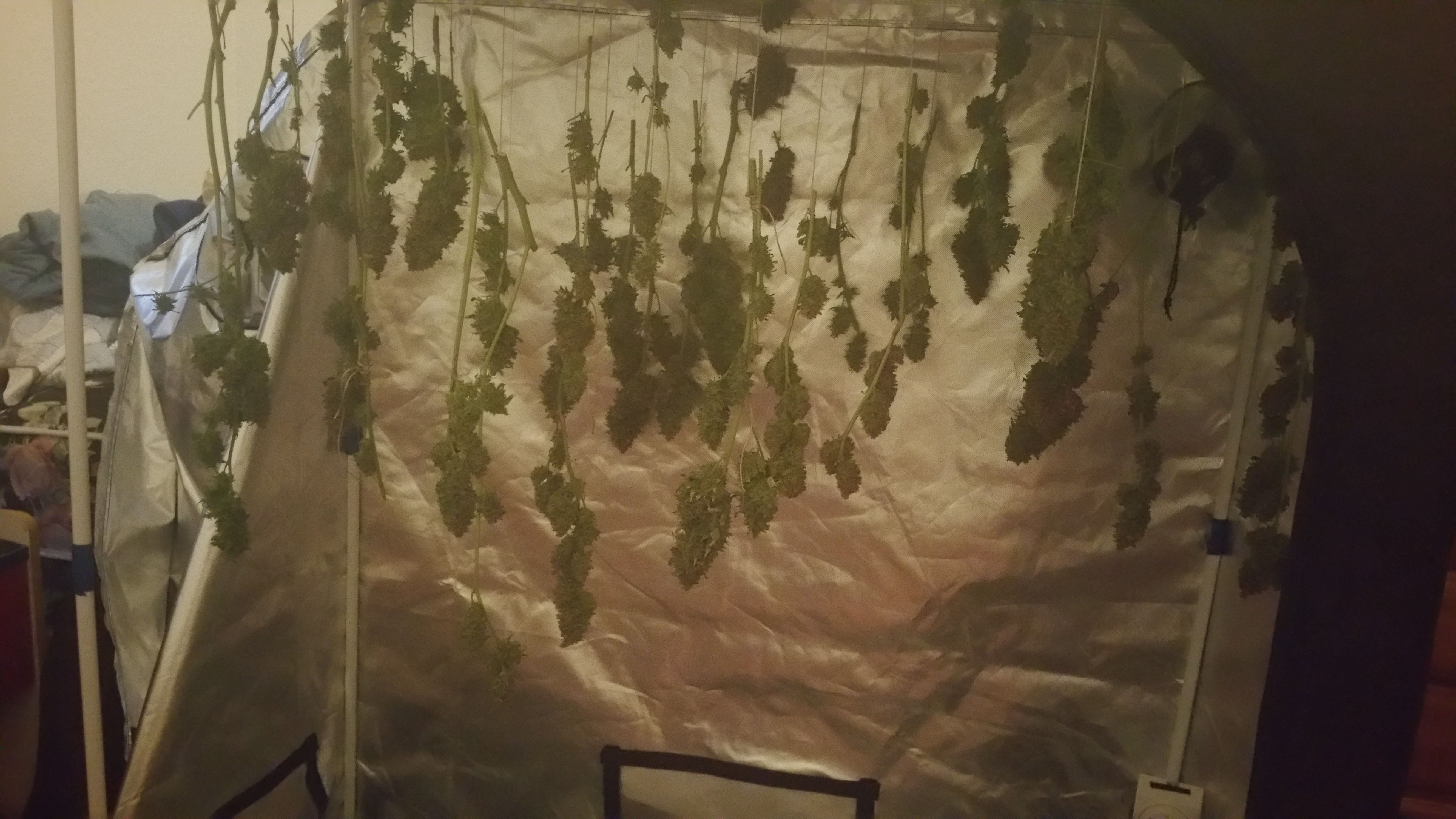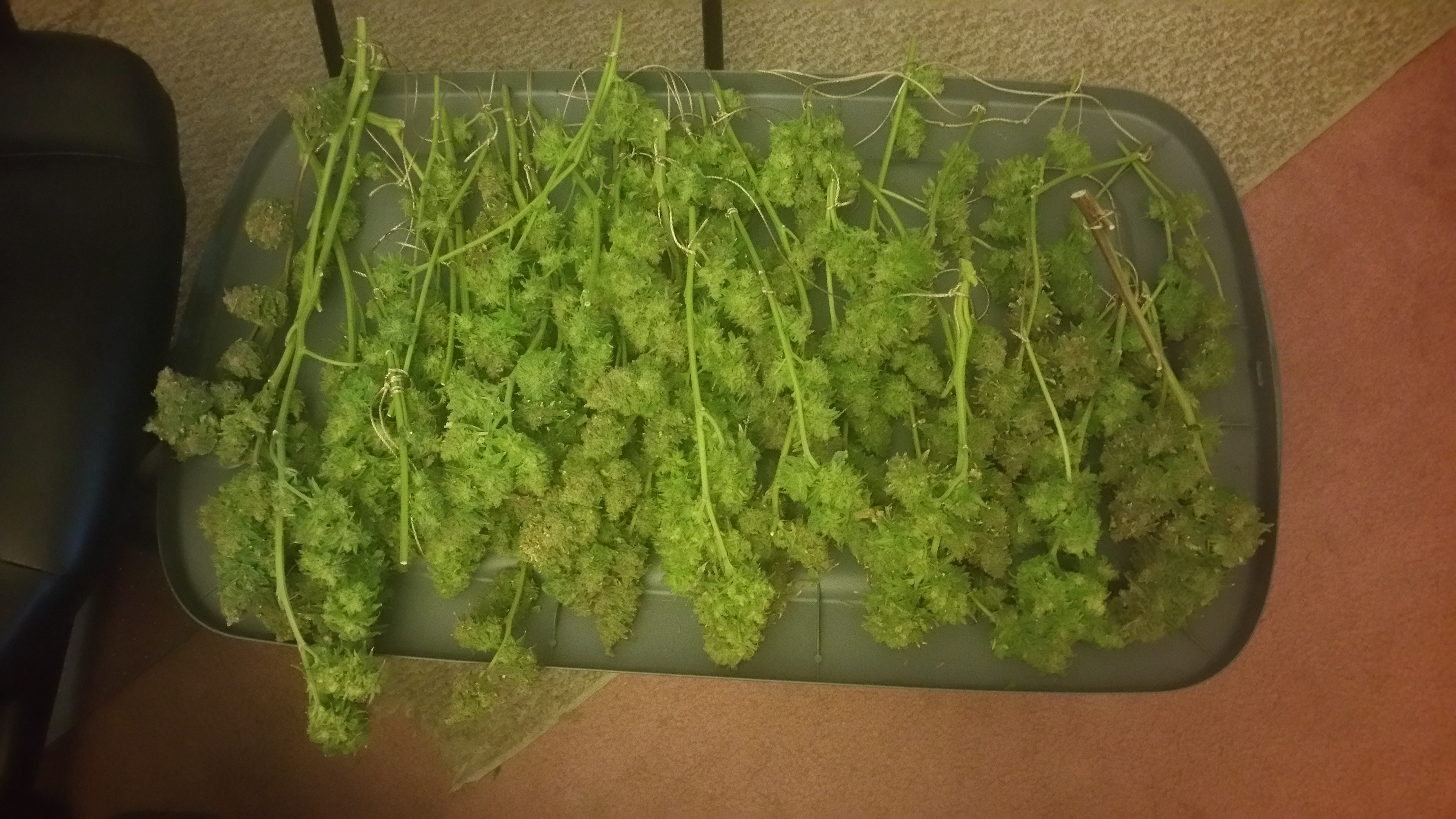 We'll see how it finally works out. I'm pretty sure it was a worthwhile. The hung weight is 2.64 pounds (measured with a luggage scale). I expect there will be about 1/2 pound of buds when it's all said and done, so that will give me something to work with.