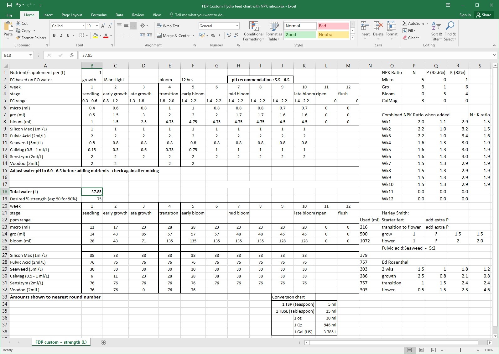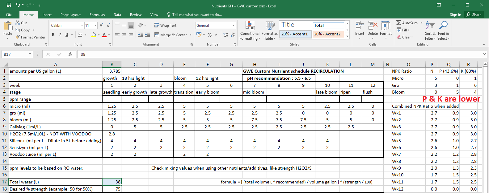 If I take into account the elemental concentrations of NPK that are really there, it looks like this:
