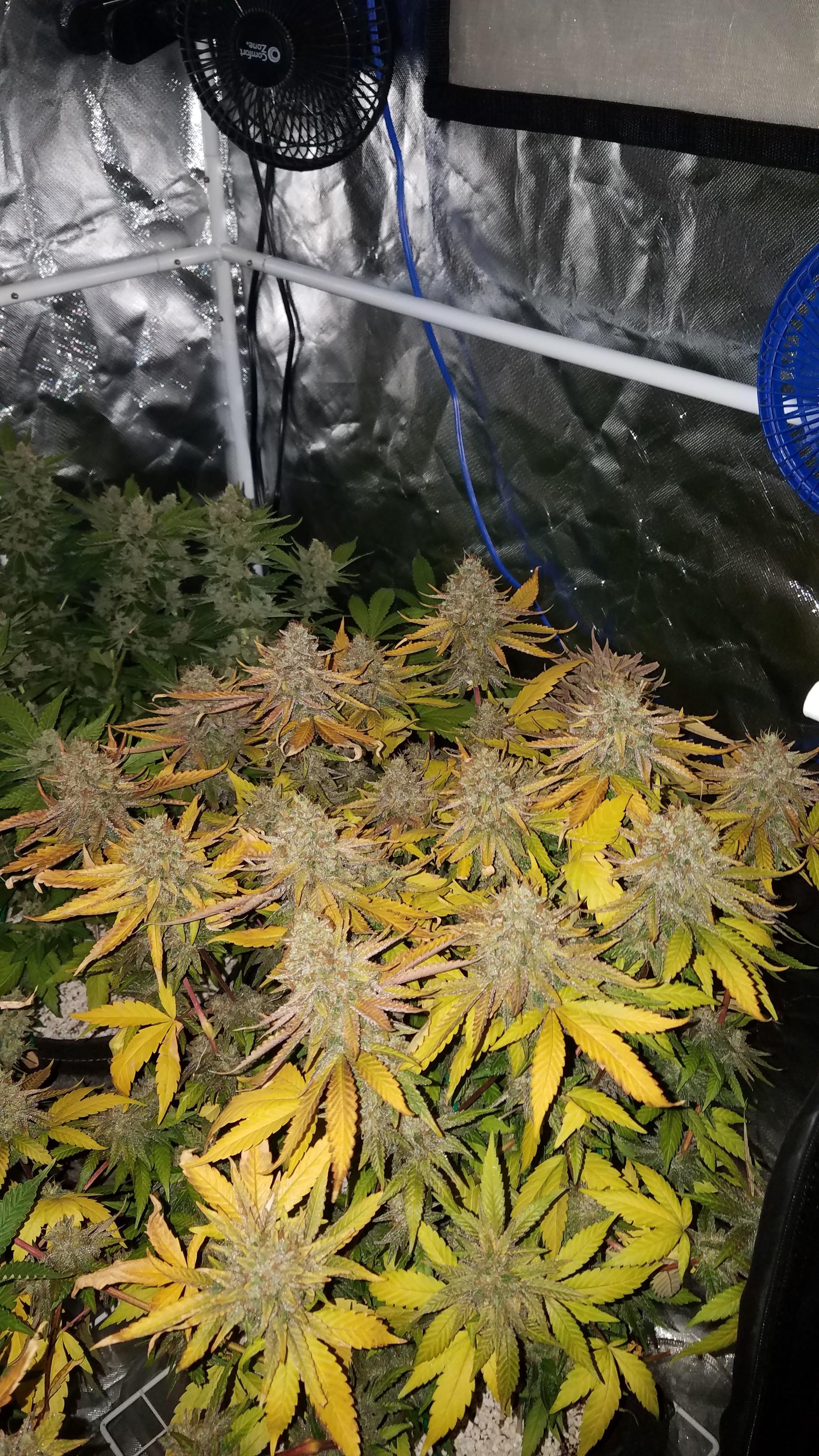 So same strains solid green entire grow perfect grow perfect manifold on these two plants its been perfect for my second Grow but i flushed both days ago they should be finishing up real soon 70 day mark is on the 24th.