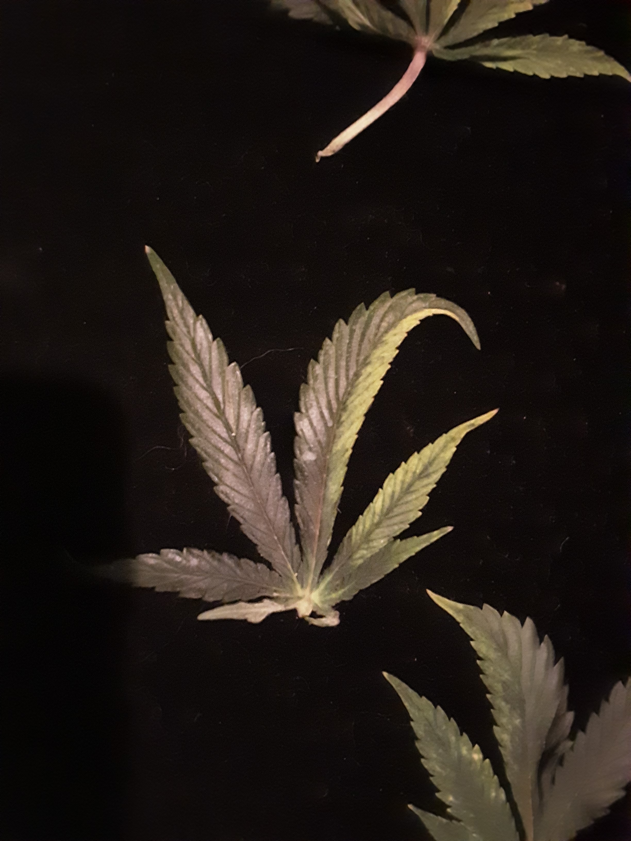 Hi my babies r 6weeks n 1day into flower,I live in a rural area ,and have tank water that ranges between 5.6 and up.. I dont adjust much I.i just add flair form flower nutrient,bud burst and once a week I add cmx and silicka magic..I grow in a mixture of soil,pearlite,and vermiculite..I noticed only a couple leaves looking like this but now there is a few..we have had a few power cuts latley and just yesterday I noticed that it looked like they were trying to go bk to veg cos a couple of the tops had suddlenly stretched up a lil , got rounder leaves as u can kinda see in the last photo..does anyone have any ideas on what I should do??
