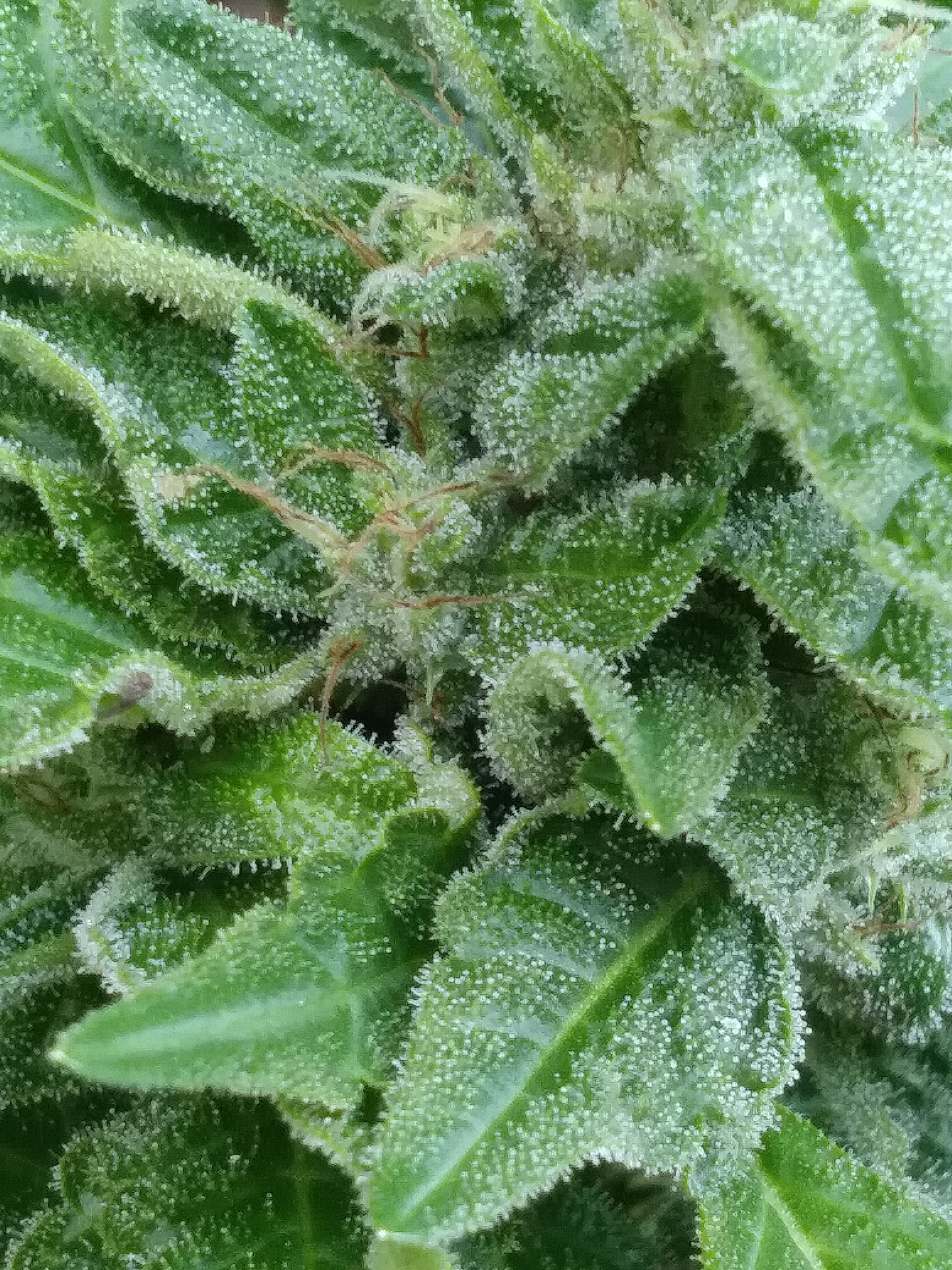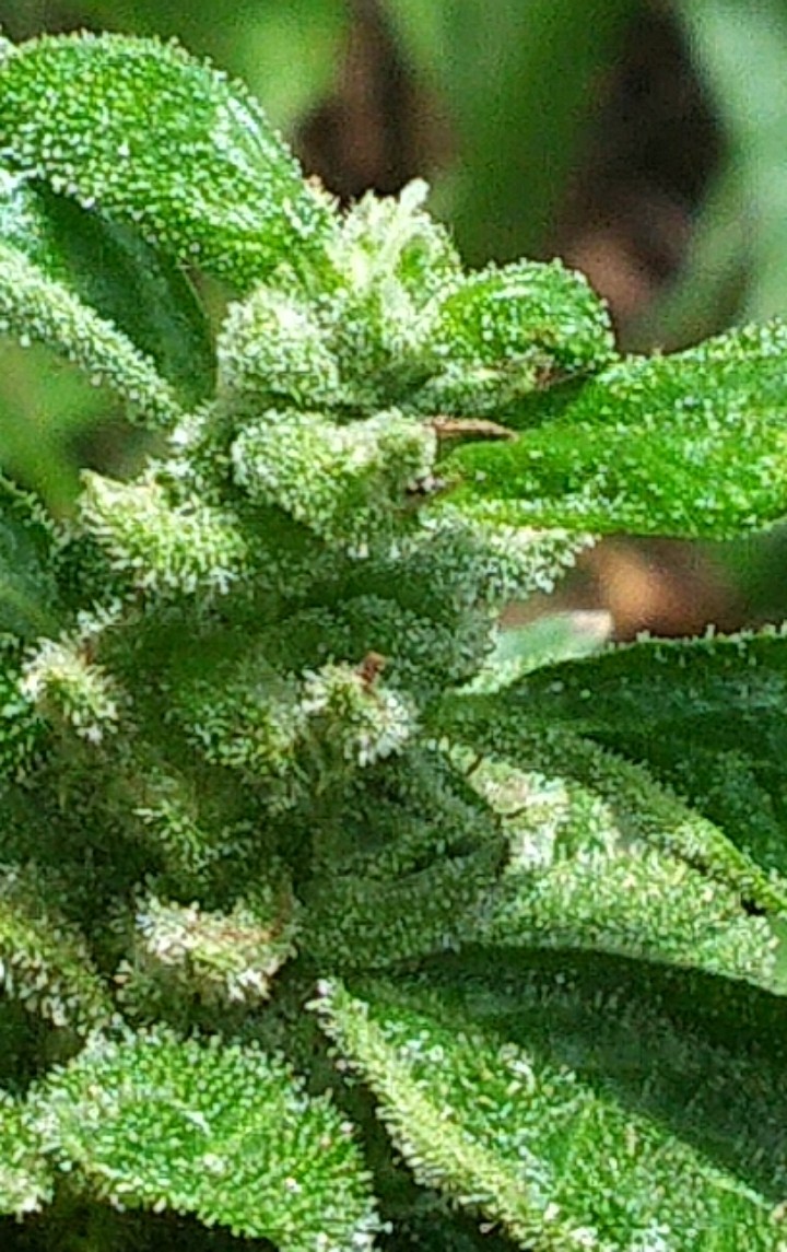 Cc420, great photo! the tricomes on the buds look even cloudier than the ones on the leafs. In the second photo, I think that there may be one that is amber, but it might just be the end of a pistil poking into the shot.