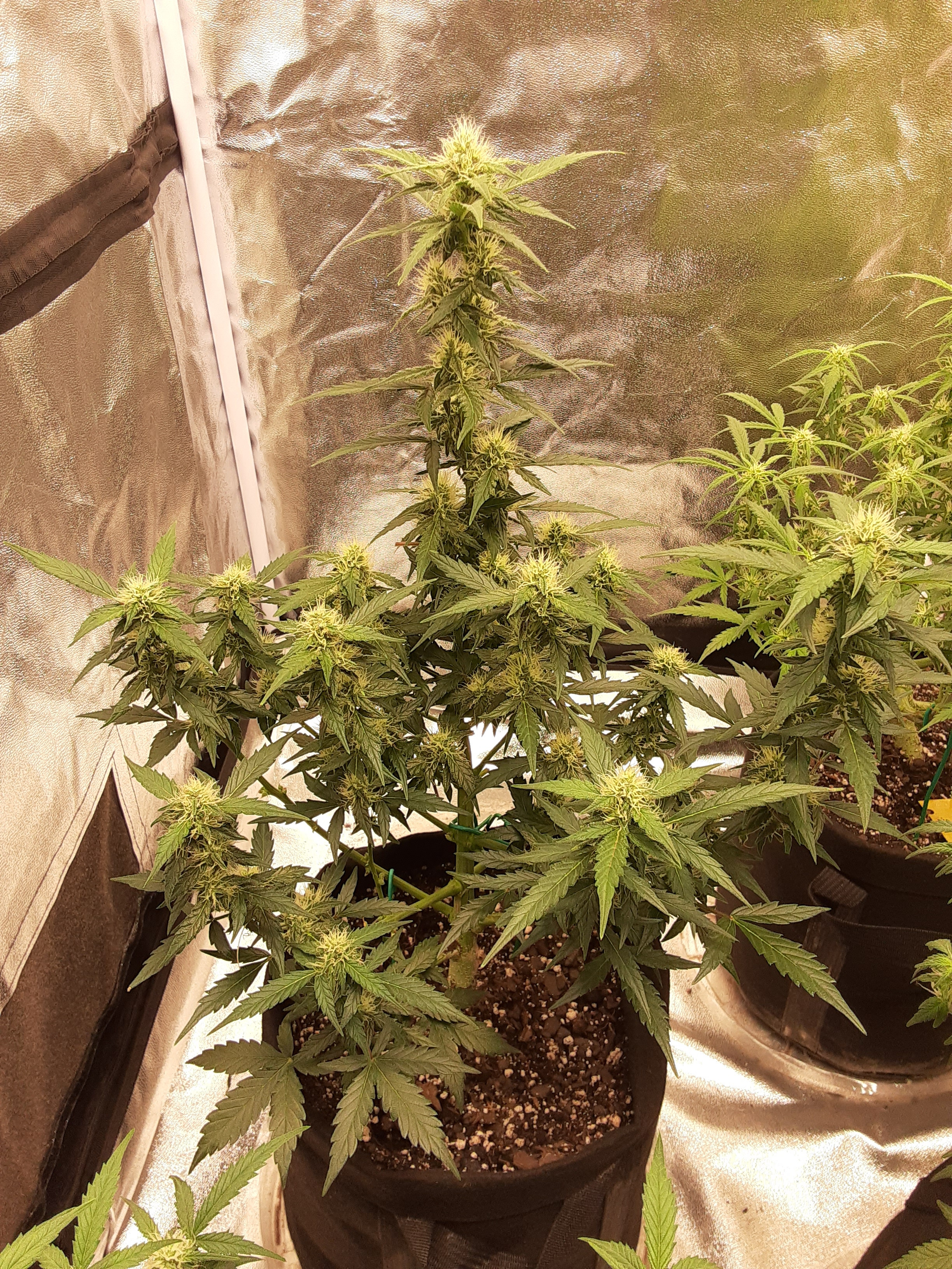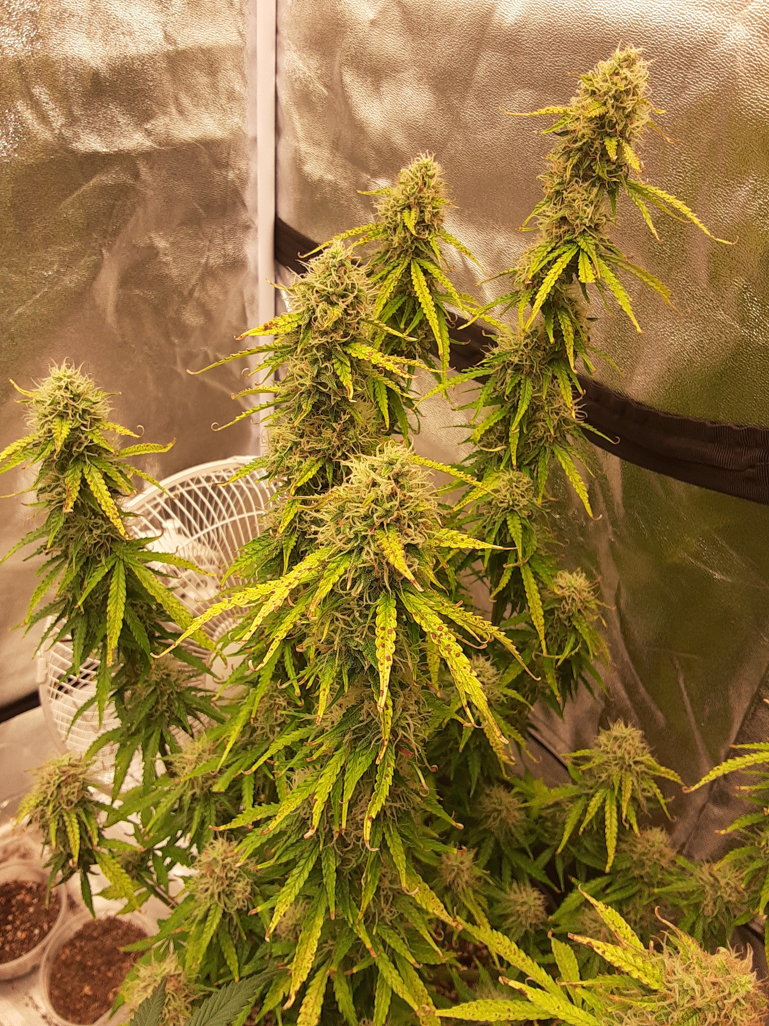 4’x4’x6 1/2’ tent, Nextlight Mega, Roots Organics 707 soil in 5 gallon square plastic planters, GH Flora Series Performance Pack nutes alternated with Fish Sh!t in RO water
