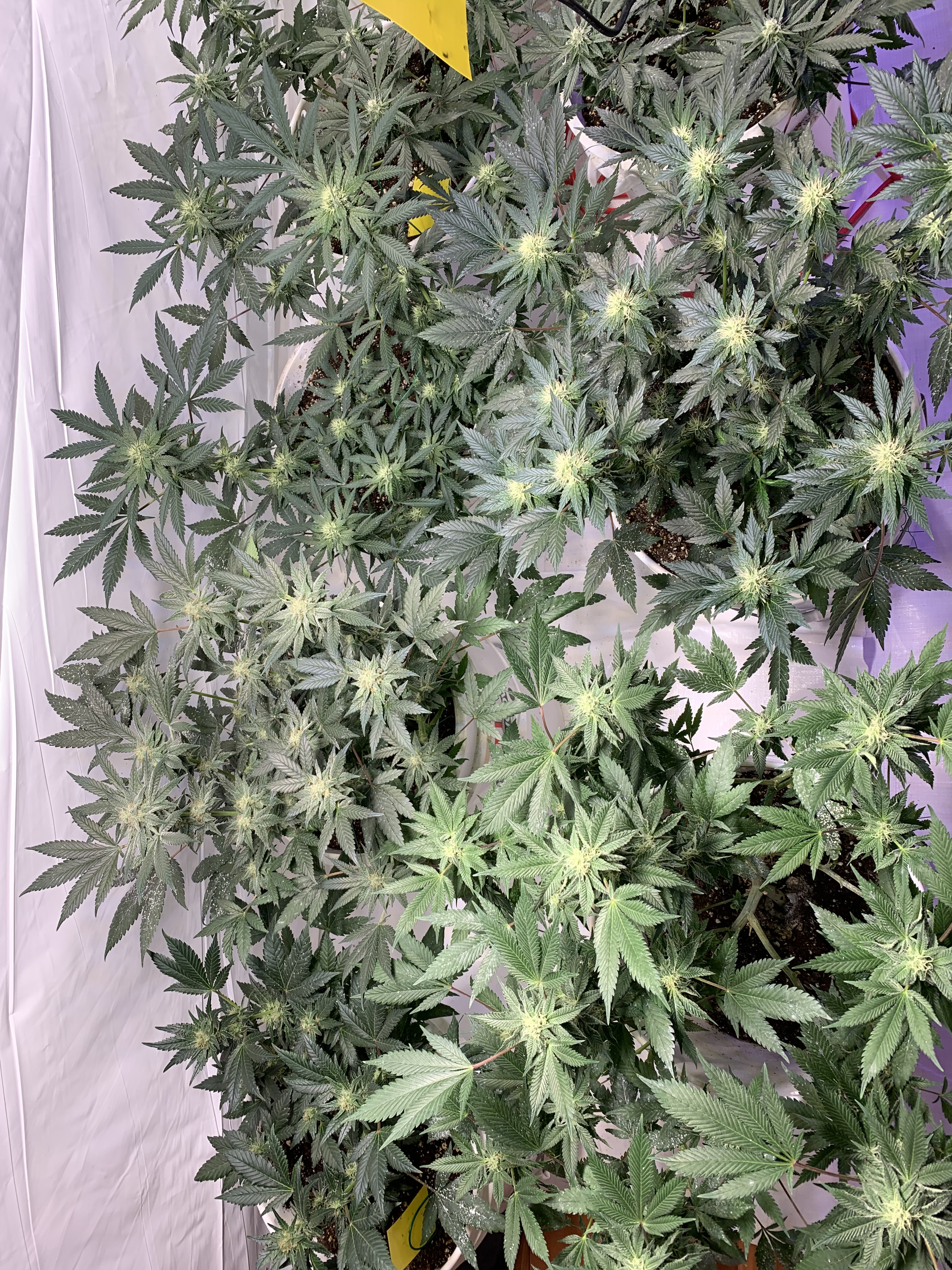 Morning from Oregon lalaland you sure are filling the pantry aren't ya LOL. I did the same with this summer and the tent still going. Just wanted to say that i have 3 GSC ( girl scout cookie ) i took from outdoor girls took them when they were still revegging from early flowering. Anyhoo they were flipped about 6wks after i took them once they got some roots i transplanted them into 3gal. fabric and let them veg for maybe 6wks. Mine are small like you say yours are. I won't get maybe over a ounce off 1 plant don't look like they'll produce bigger buds.