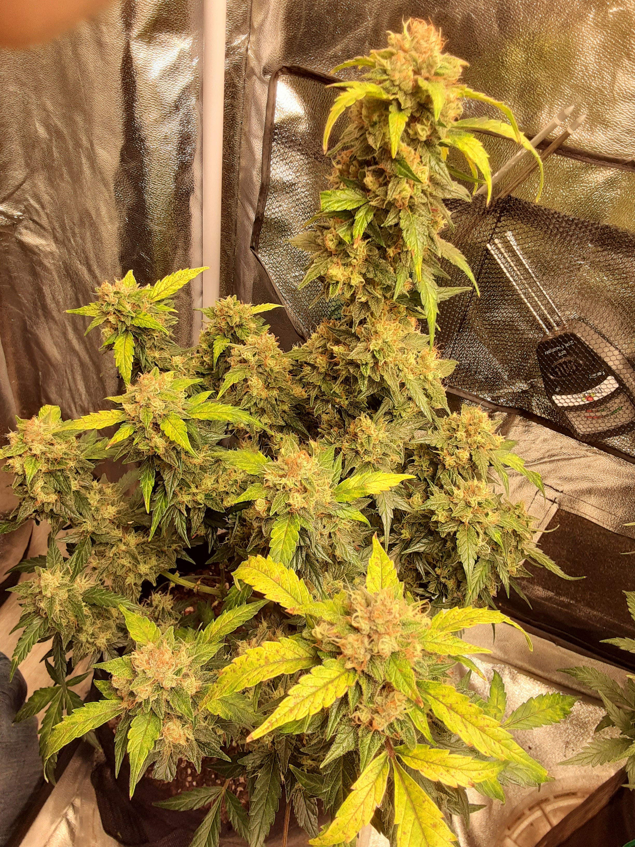 They are perhaps not as heavy as I'd like but they are better than I expected when I first started out. Smells are getting nicer now with a little bit of sweet fruitiness coming through which is better than the almost sweaty foot smell I was getting when they first started flowering but I think it was the critical crack that was giving off that aroma but it has mellowed a bit and is a little more skunky sort of cheesy smell now. Smoking some proper dried and cured buds is something I'm looking forward to. I can buy nice buds but lately it's all been a little too sticky for my liking but I think thats down to demand being there for more but at the same time supply has been interrupted due to local covid restrictions plus a couple of factory sized busts which I'm sure has contributed to it.