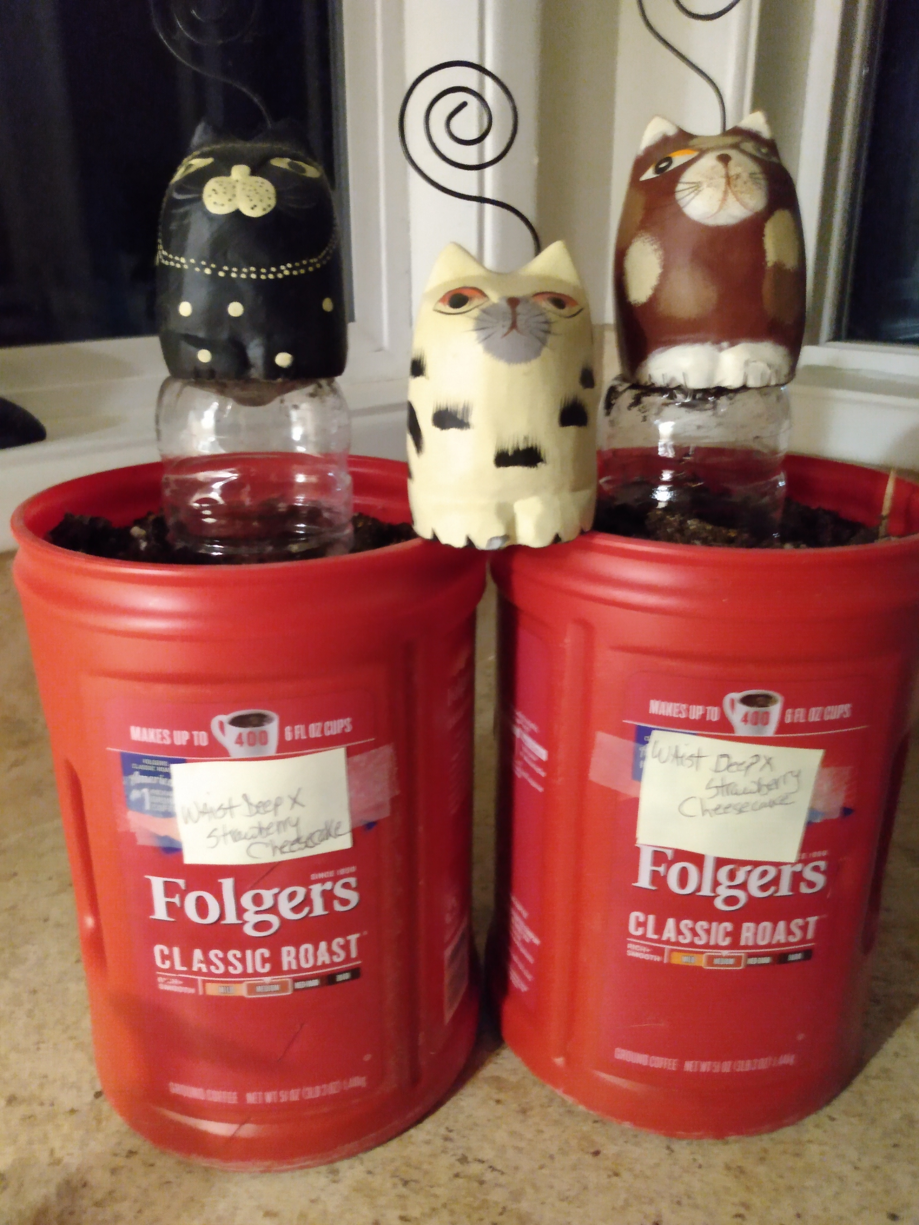 Now i added 2 new additions to the photo gals. I am running 2 autos just got germinated this a.m. FBLs strain of strawberry cheesecake x waist deep x lemon skunk LOL looking forward to these autos cause they are fast. I'm challenging myself with the folgers containers which have lots of holes in them for drainage. Enjoy