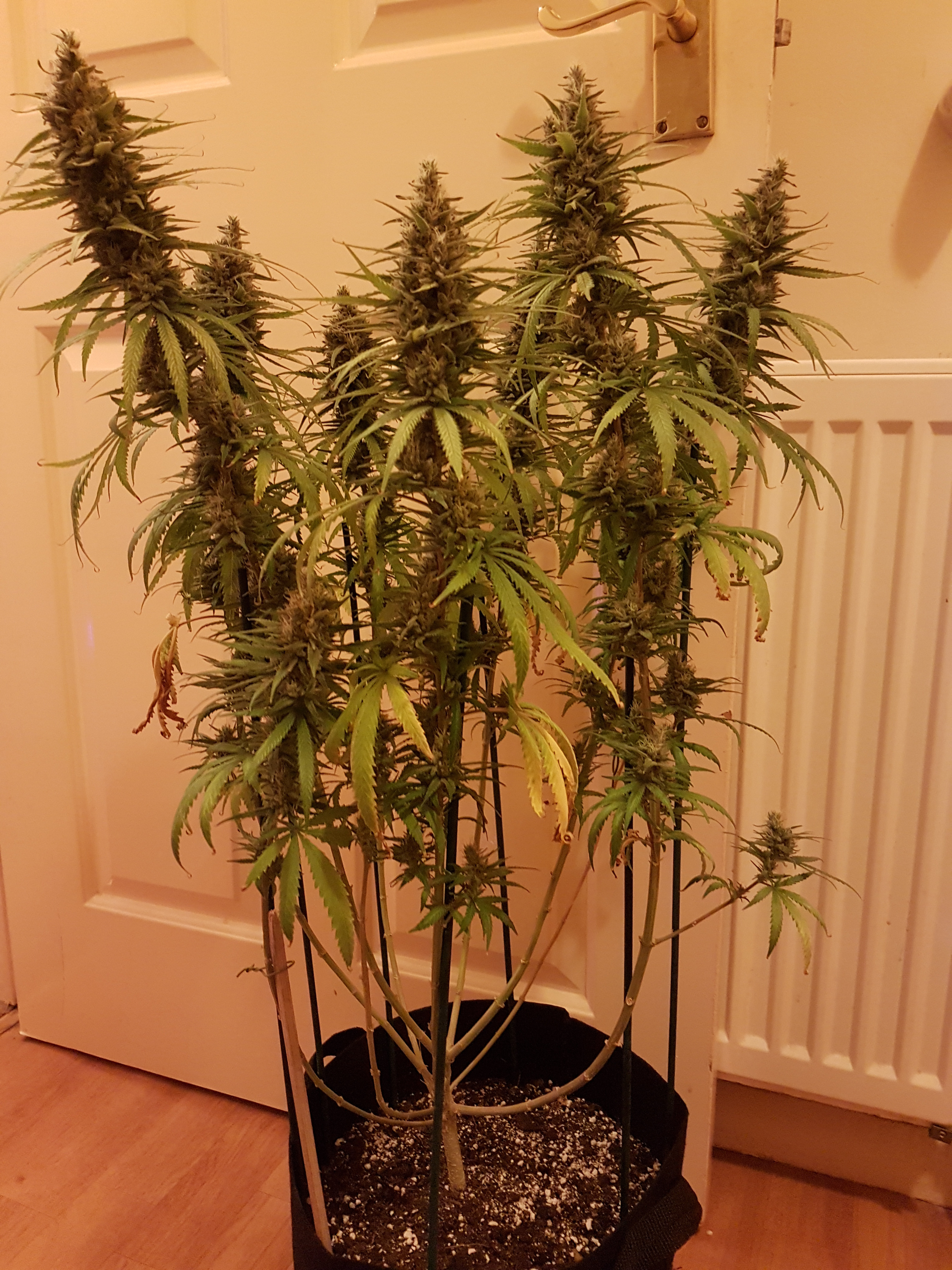 I finally remembered to bring my phone with me lol,this coming Saturday will be 9 weeks finished ,so the greener of the 2 is blackberry dream and the other sour patch kiss ,I expect to see amber tomorrow when I go down to fill Res3 Photosnew grow room built summer of 2017 ,argo max tent for veging ,big kahuna reflector, 1000hps with added leds for the full spectrum . 15th indoor grow ,5 years outside gorilla grows(stealth is the key),veg under t5s growing autos under 300w leds