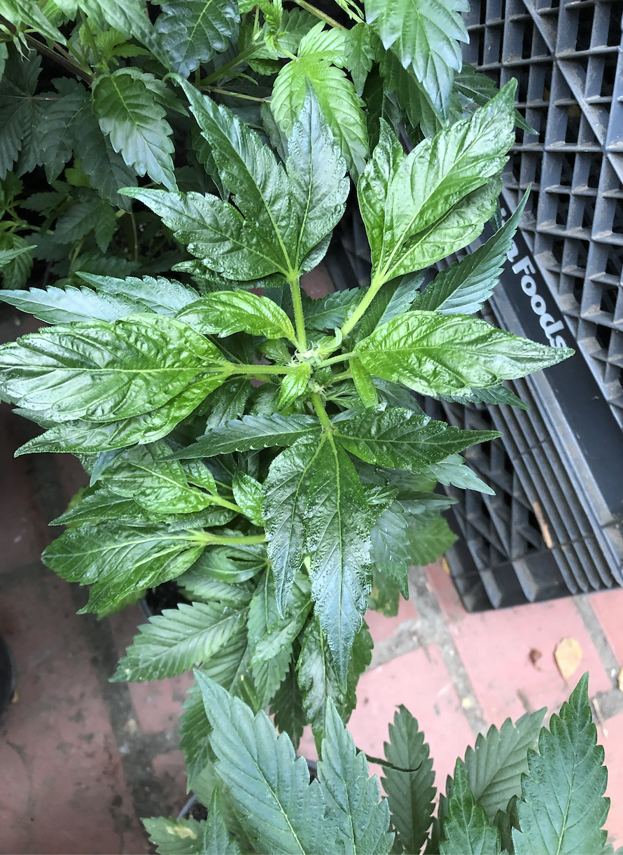 My 2021 gals. Moved my indoor set-up outdoors. I guess it's a "Hybrid Grow" now. We had some pretty steady rain and it kept everything dry inside.