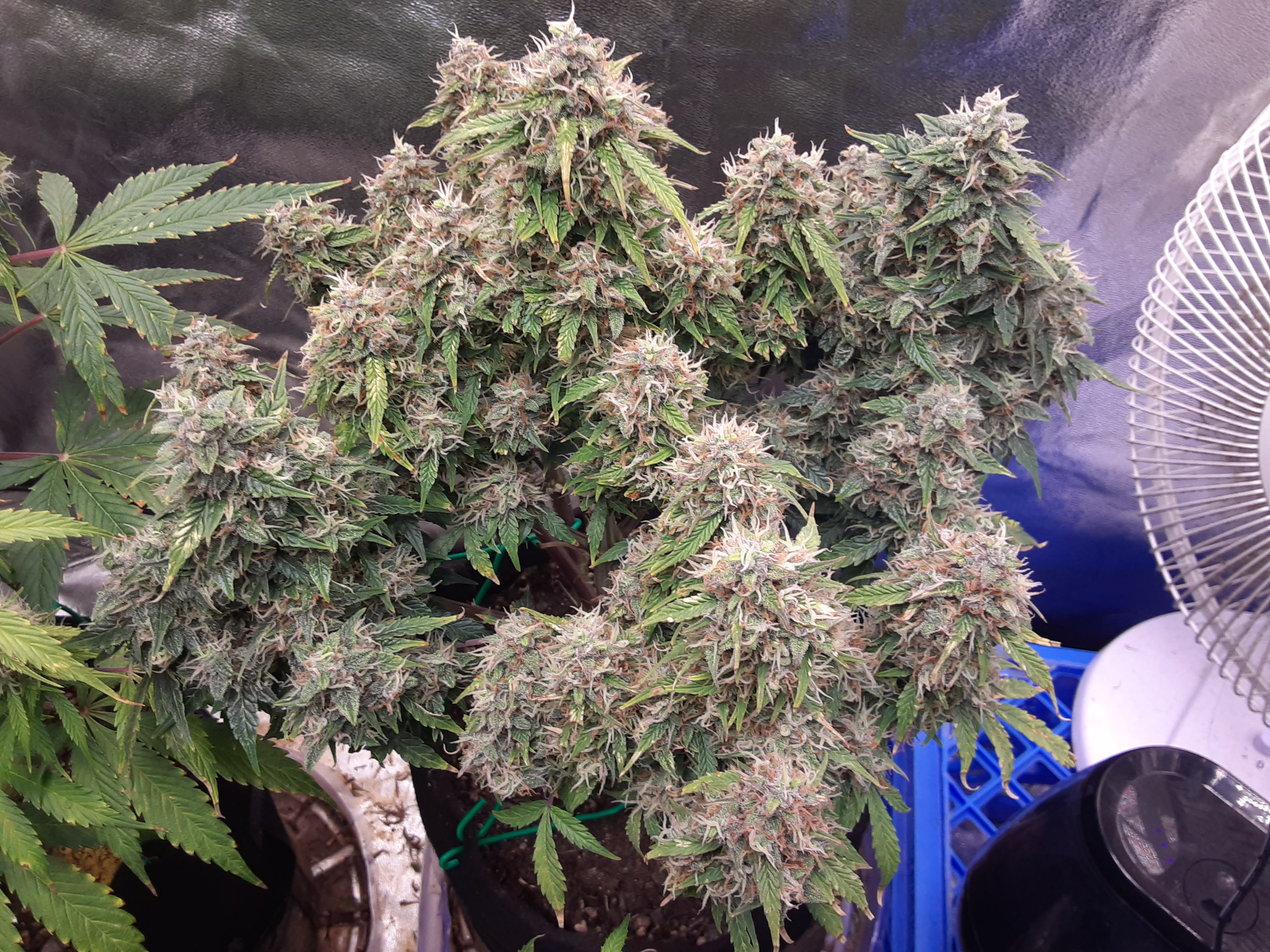 Almost 4 weeks into flower and things are looking as good as I could hope. No real problems although I do notice a slight tip burn and perhaps a touch of ph swing on the Gelato41 Fast. But the mass of buds is showing some nice frost and things are building nicely.