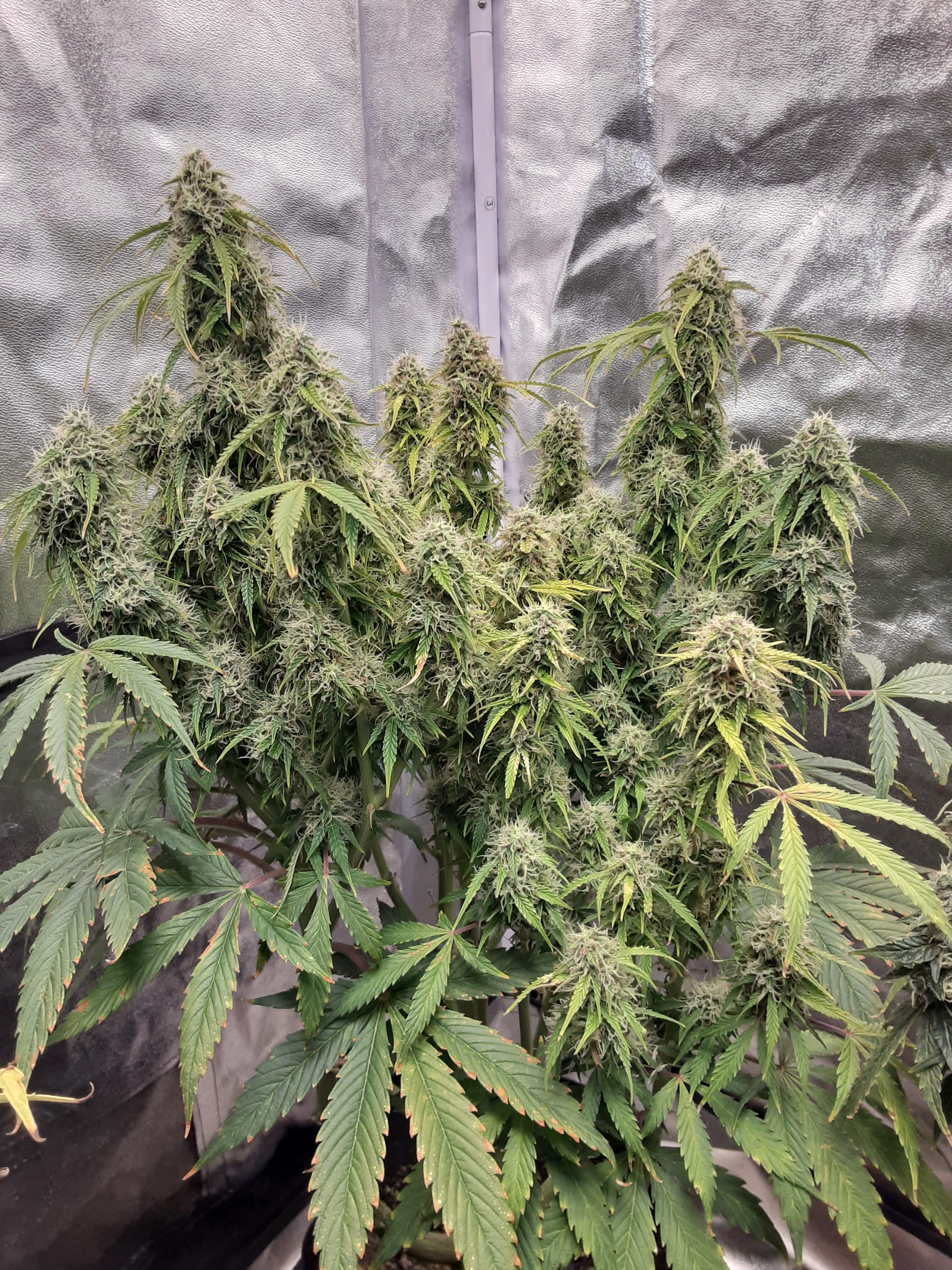 Purple Haze Malawi by Ace Seeds. This one is 23 days into flower. I'm not seeing any purple yet, so maybe it's just got extra Malawi? Will be defoliating in 5 days or so.