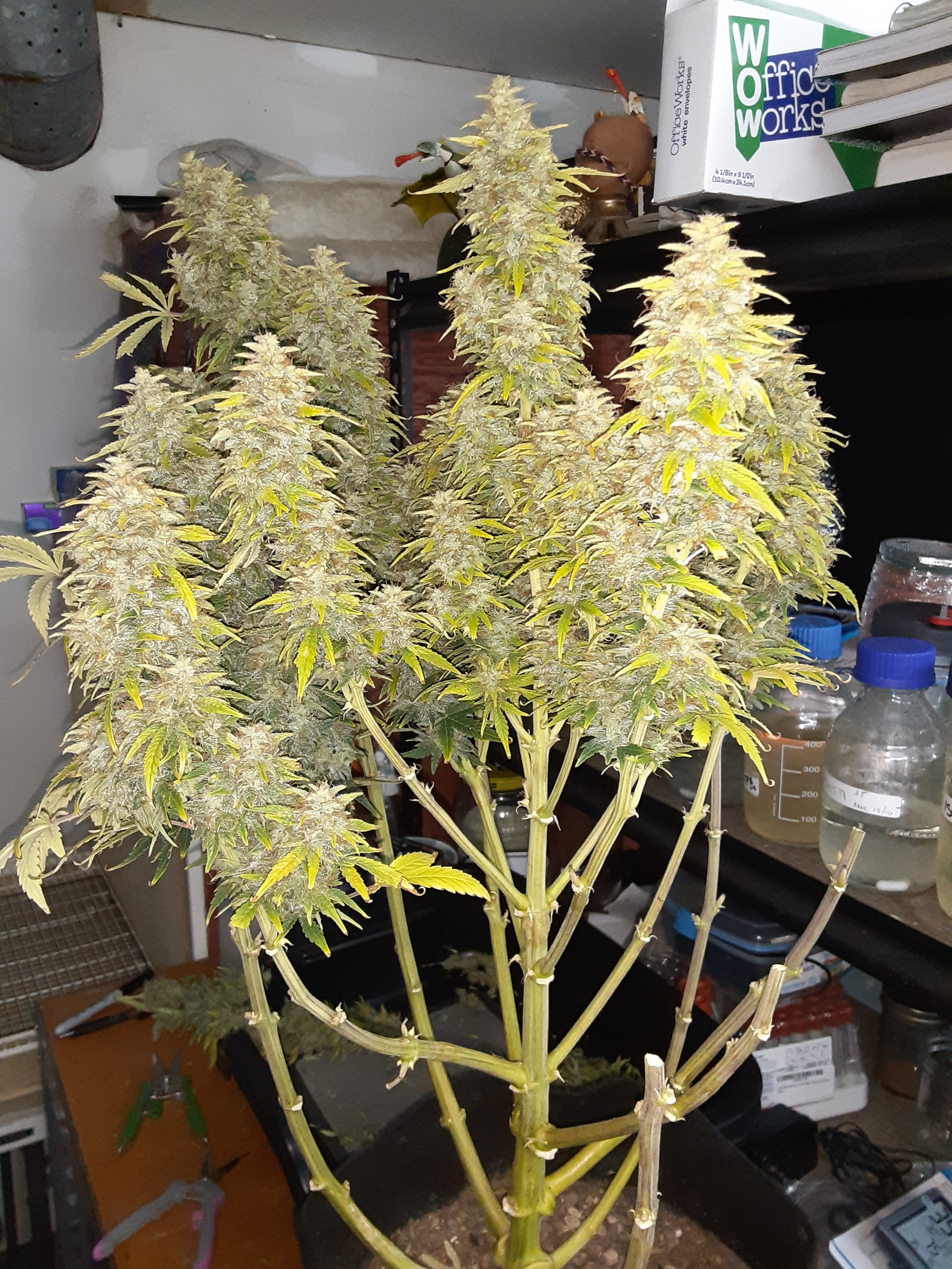 Before and after heavy defol ready for flipping. I was going to be gifting a few to a buddy to free up room but he can’t get over due to the weather so looks like I’m growing 13 plants.. Been brutal with the defol trying to only grow tops with this grow to stop them getting so bushy. Yield may suffer a bit but I can live with that.