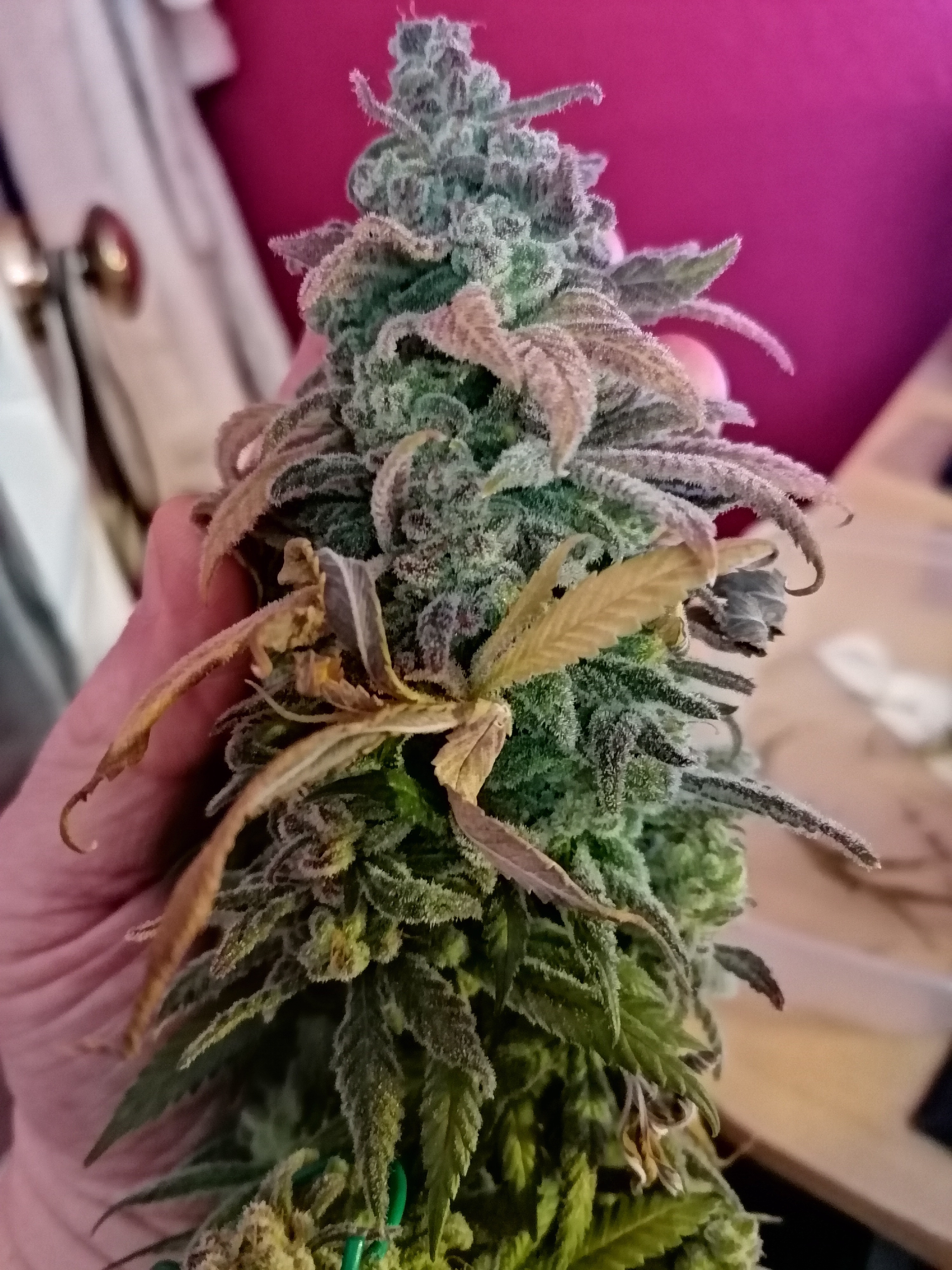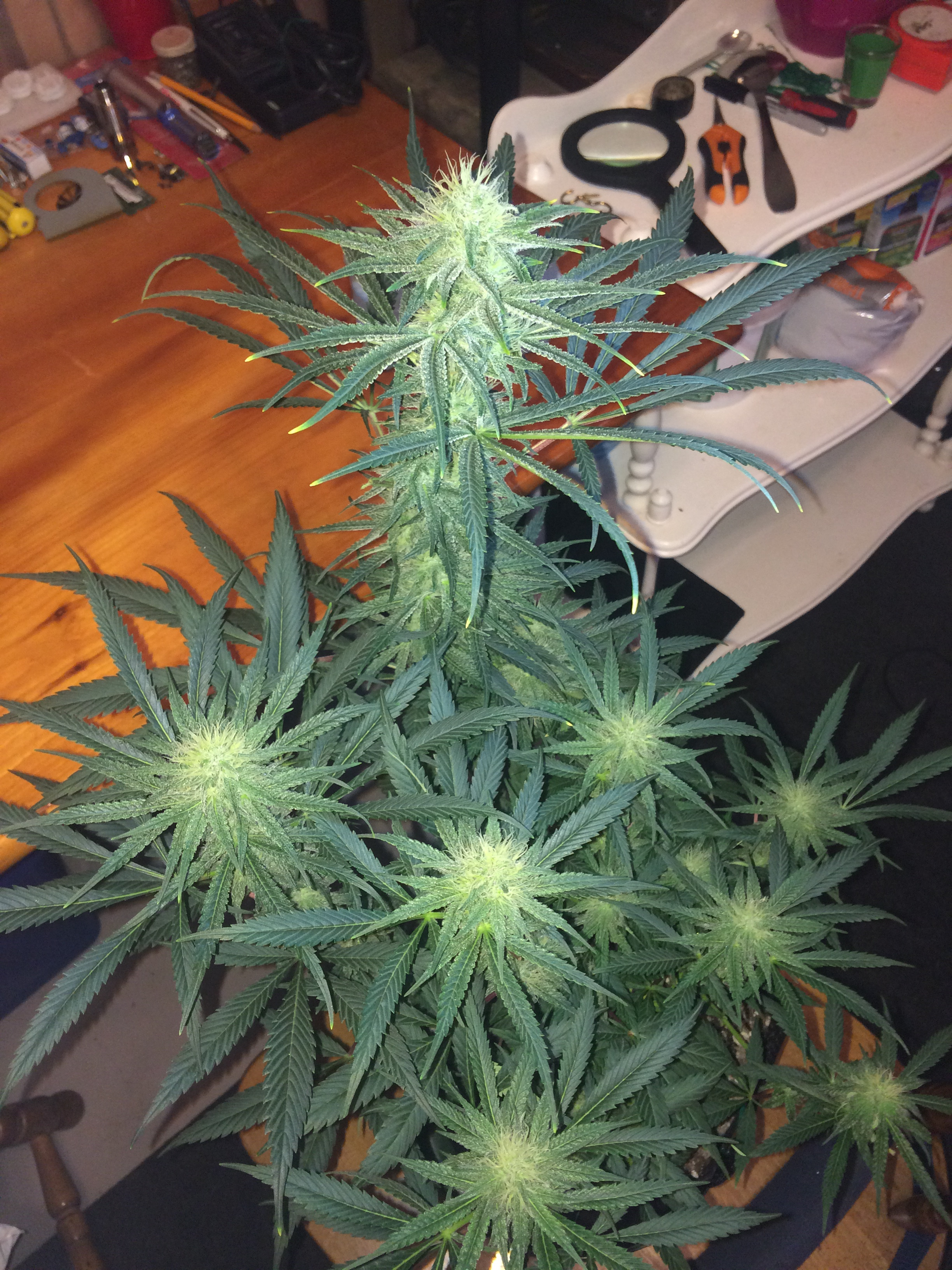 plant 2 will be less( 2.10oz dry). It was underdeveloped and scrawny. But I did harvest yesterday. Cloudy trichomes