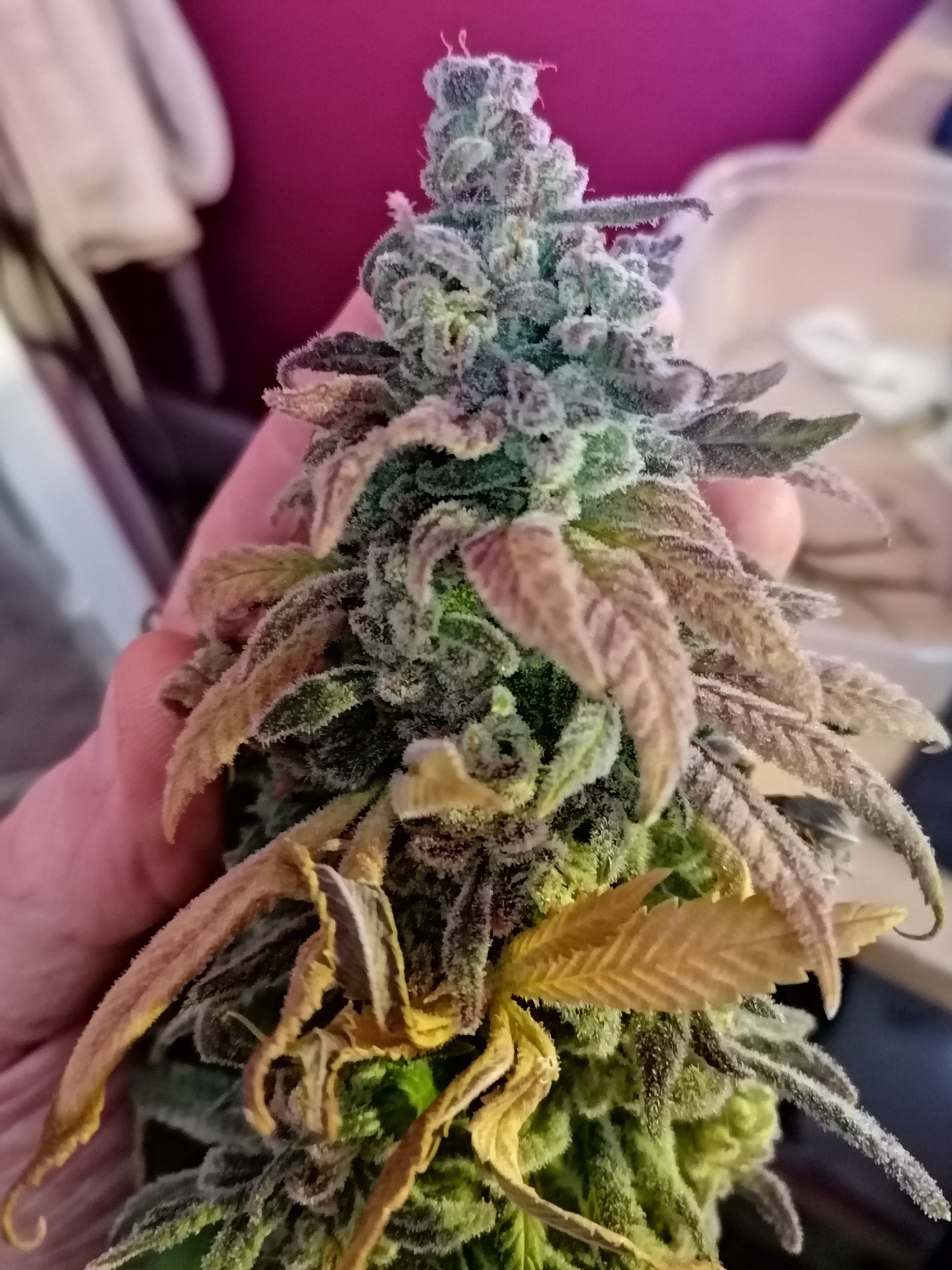 Getting into week 5 of flower, and not overly impressed with a couple of my plants. Can only blame myself, but yeah was hoping for a bit more wow from them by now. Not much to blow my eyes or nose away. This one seems to be the only one with real good trich development, just hope it's able to fatten up for me. I'm hoping switching away from bag seeds will help.