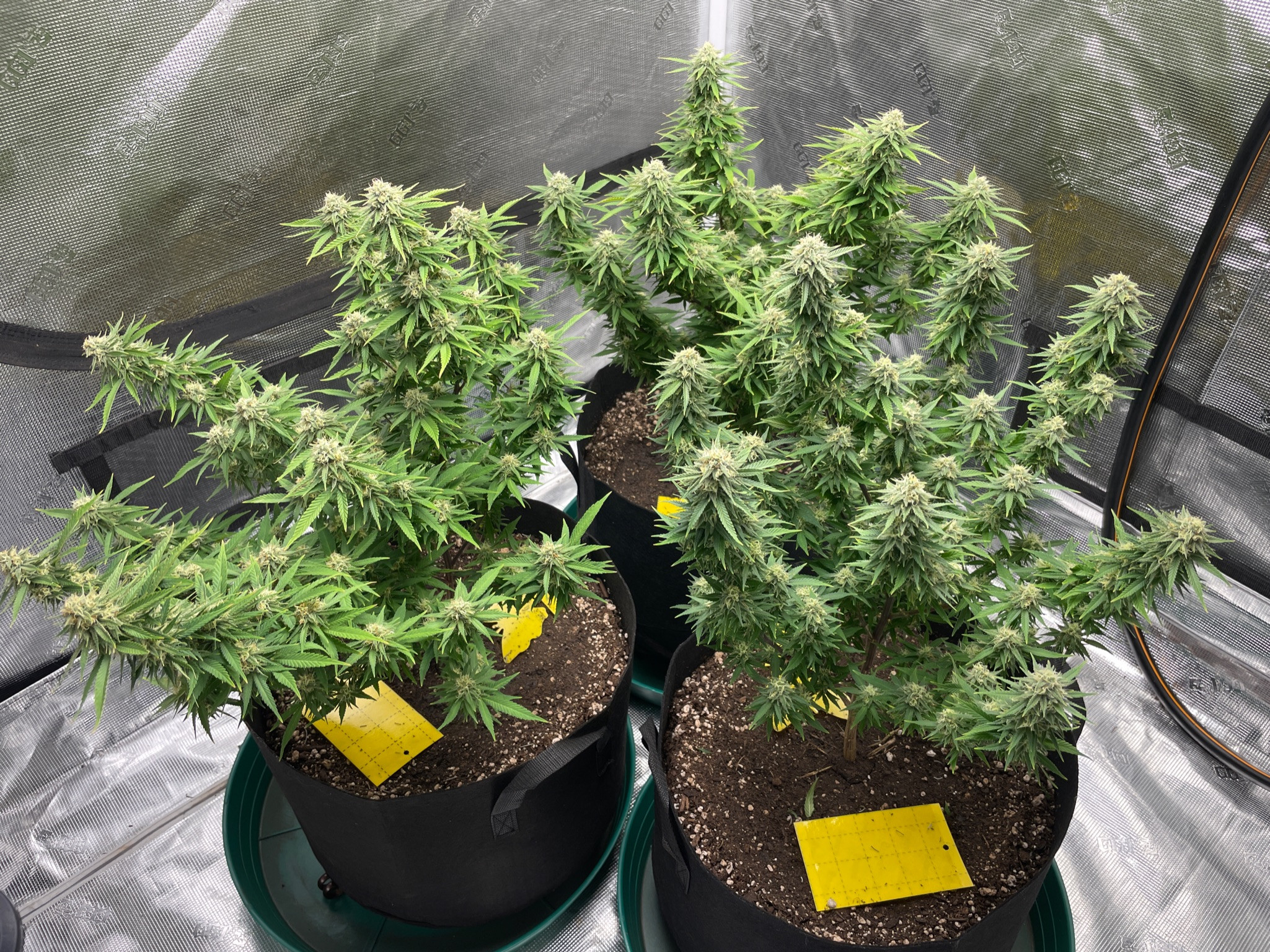 Organic, coco & soil, 240w LED, 3 gallon fabric pots, basement grow in tent.