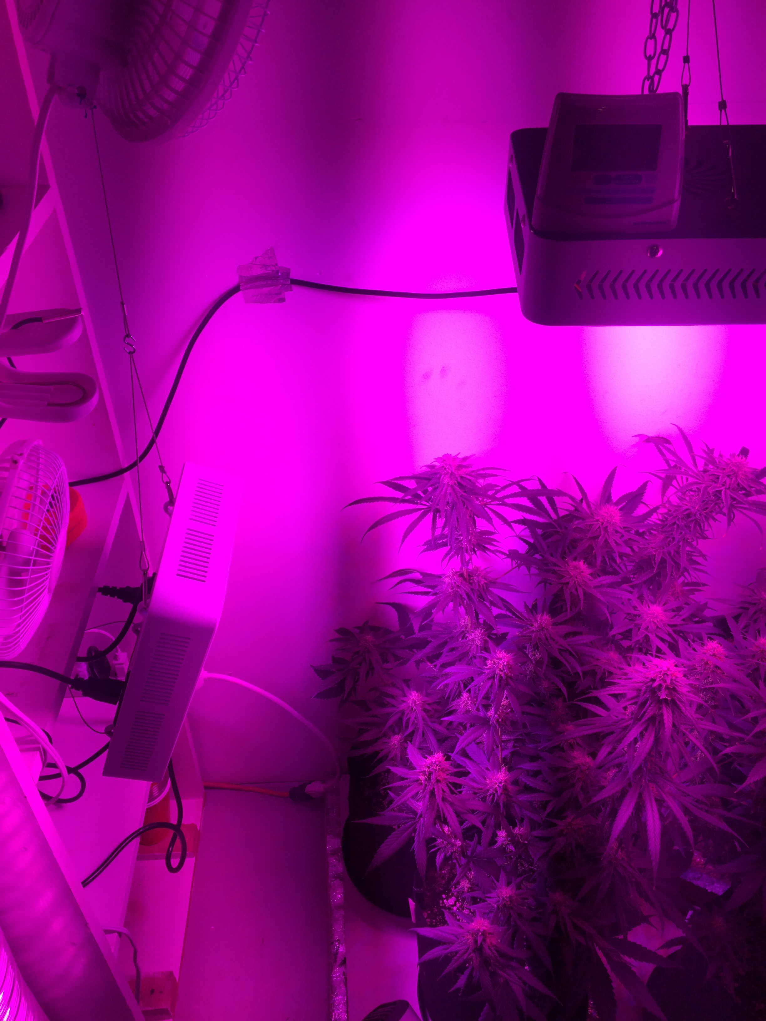 Think this was worth the screwing around and extra 140w? It's just a no name blurple, on the redder spectrum. No room above the canopy to hang it, so I hung it like this to give some side light to my two plants with some of the lowest top sites. Think it'll be worth anything for the last 3-4 weeks of flower? Up top is just a Phlizon blurple "2000w" model, not sure what it actually draws. It seemed to brighten the place up a bit, but hard to judge you know?