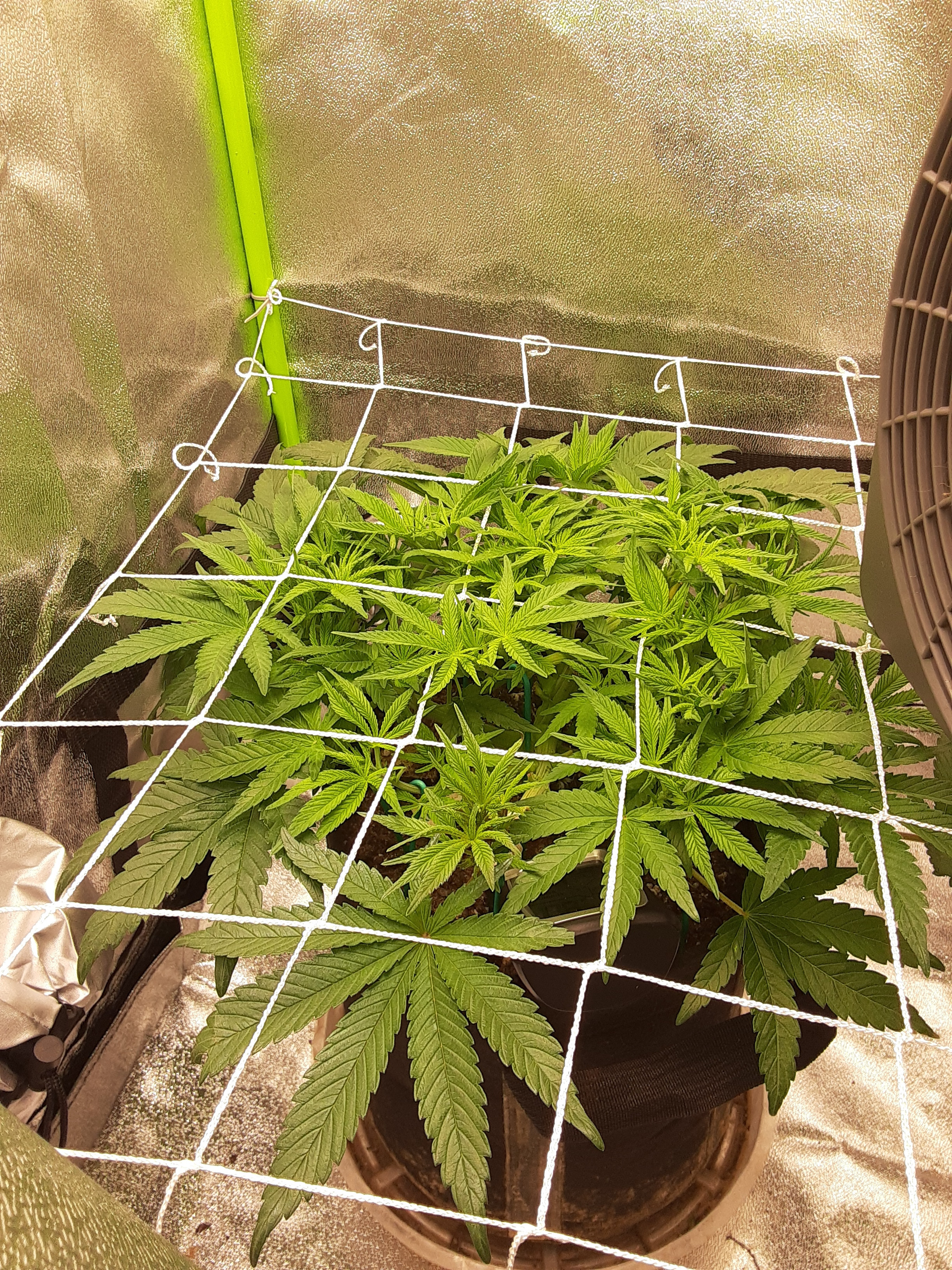 I added a trellis because it's short tent and the light is @ 23in from top of plant. I flipped 12/12 on the 14th. So 5 days now.