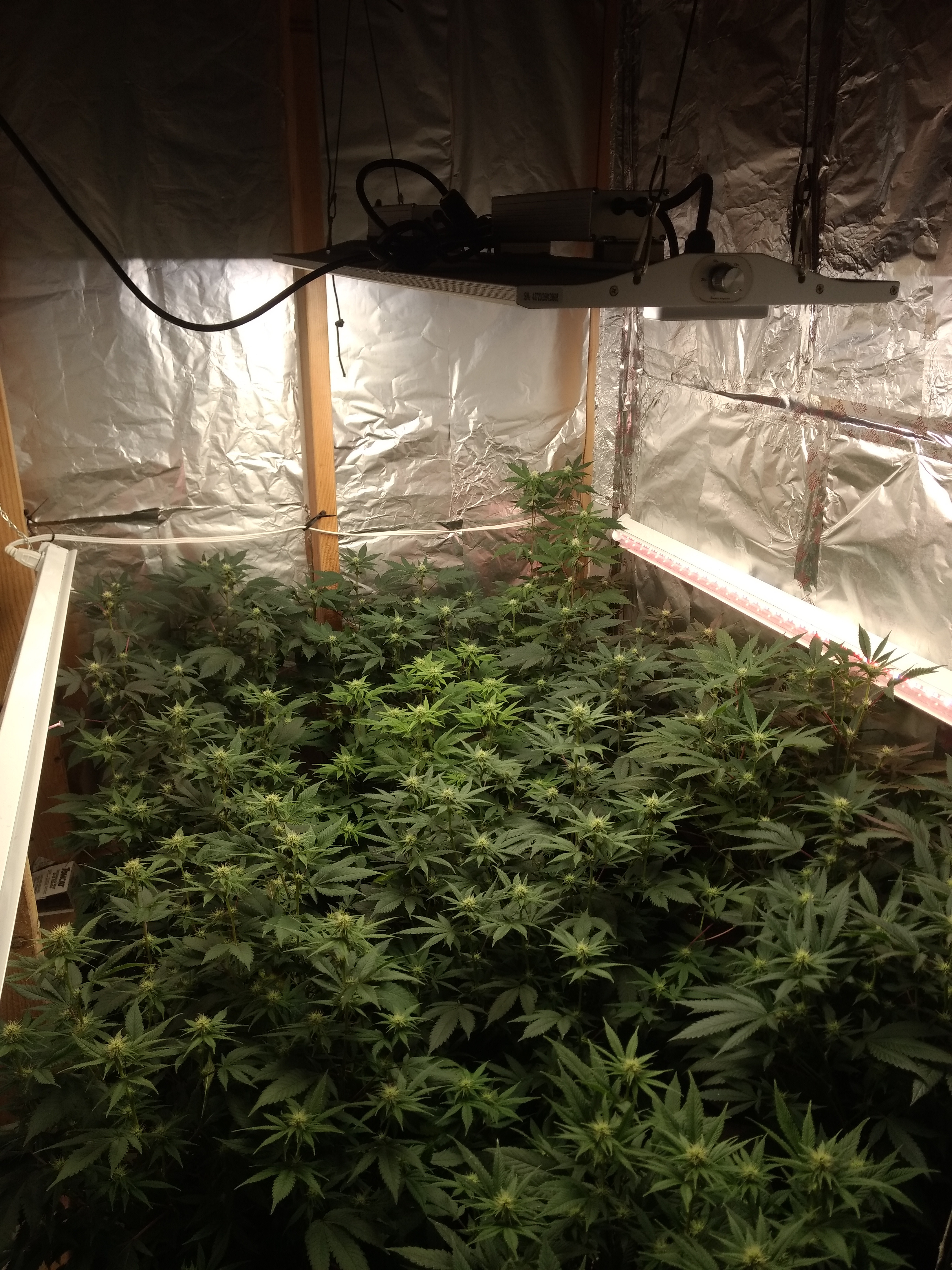 Hello my AWESOME growing farming friends!! Hoping everyone is happy, high, and safe. Out of trim jail, 2nd grow underway, almost 4 weeks into flip. Upgraded to Viparspectra VA4000 right at flip and I am mindblown how fast these girls are now!! Almost 1" daily. Mostly C'99 and Blue Dream clones. Has anyone had good results with NOT defoliating? All have had LST and manifolding since babes. Half are currently trimmed, but it almost seems that the uncut girls are more vigorous. It just means more bubblehash once I can snag a machine (sold out for weeks now...) Currently puffing on some Bruce Banner, hoping you all have a stellar day. 🌲✌️❤️