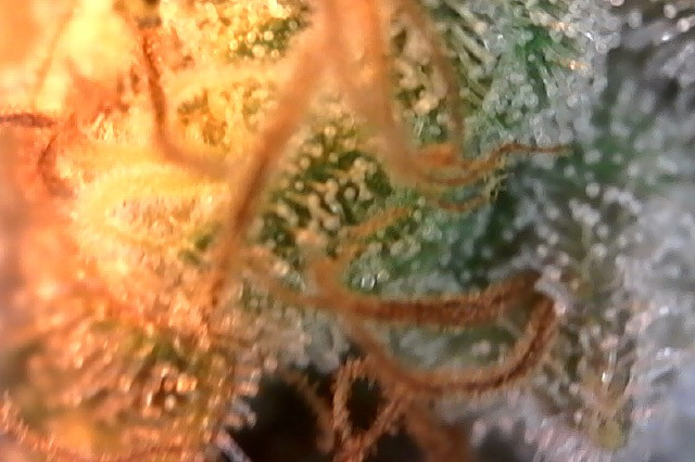 Big Bertha made it to 46". The sugar leaves scintillate like little tiny people with mirrors. With a light squeeze of any two buds my thumb and forefinger are sticky enough to pick up a piece of kitchen paper. The Berthettes have also added a little in cola height. Not as sugary.