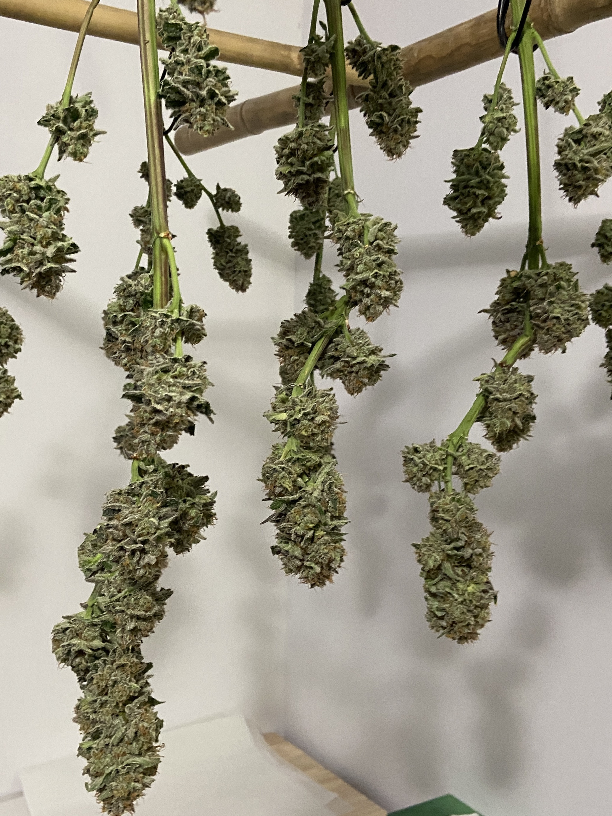 They're still hanging I don't weigh em till they're ready to jar. I leave more branches to but as I trim up the leaves towards the end I cut off anything not really growing or that's hanging upside down and give em to the kids so they’ll leave me alone about samples lol I'll post final weight on it as I jar it