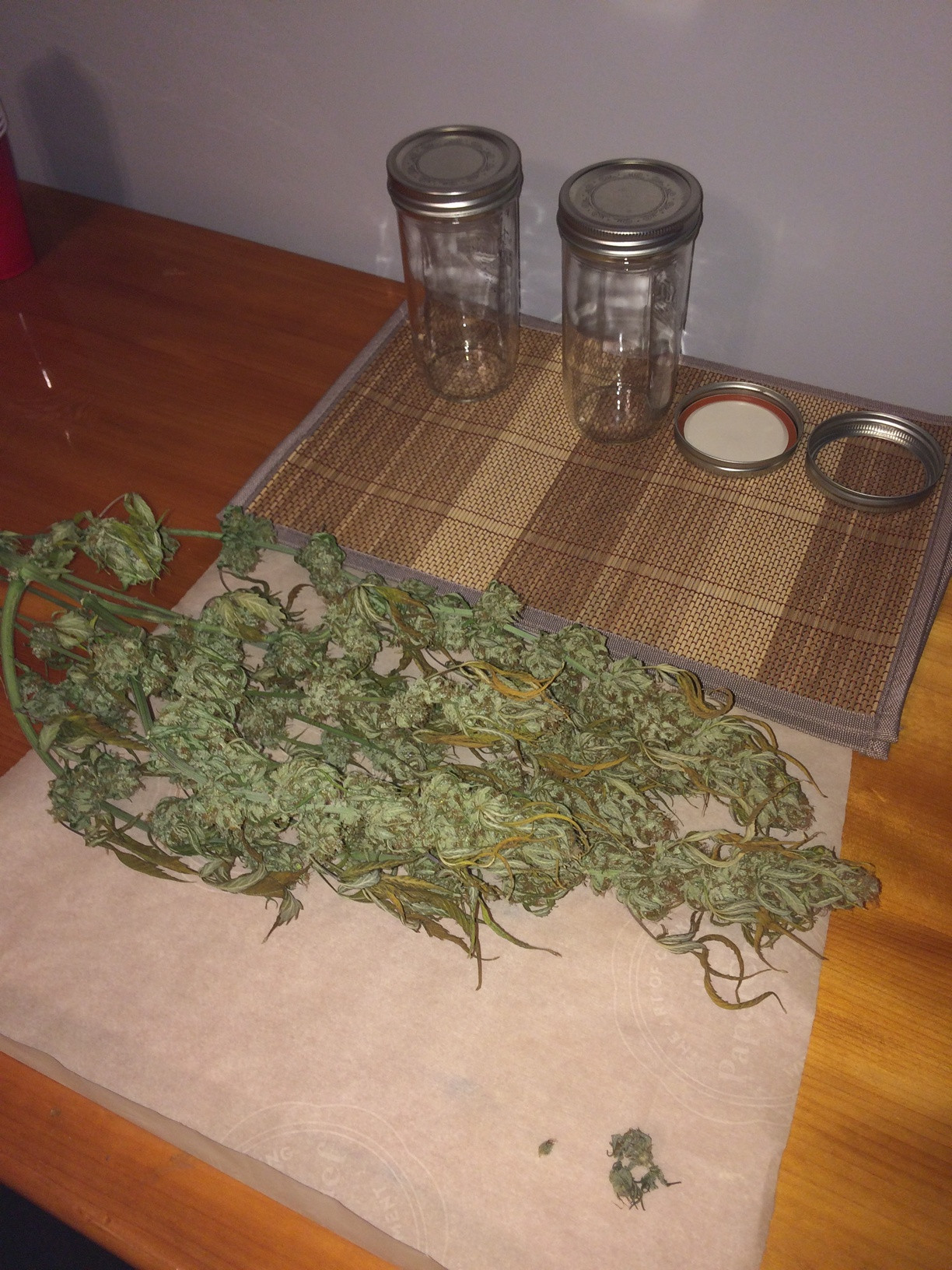 About 2oz of what smells like mocha or chocolate, can't figure it out. It's the bombs forsure. Did not smell like this at all while growing. One more plant left still hanging and yet to trim, but looks like I may hit this HP mark after all. Gotta be close to 6oz so far and still a heavy yielder left to go.