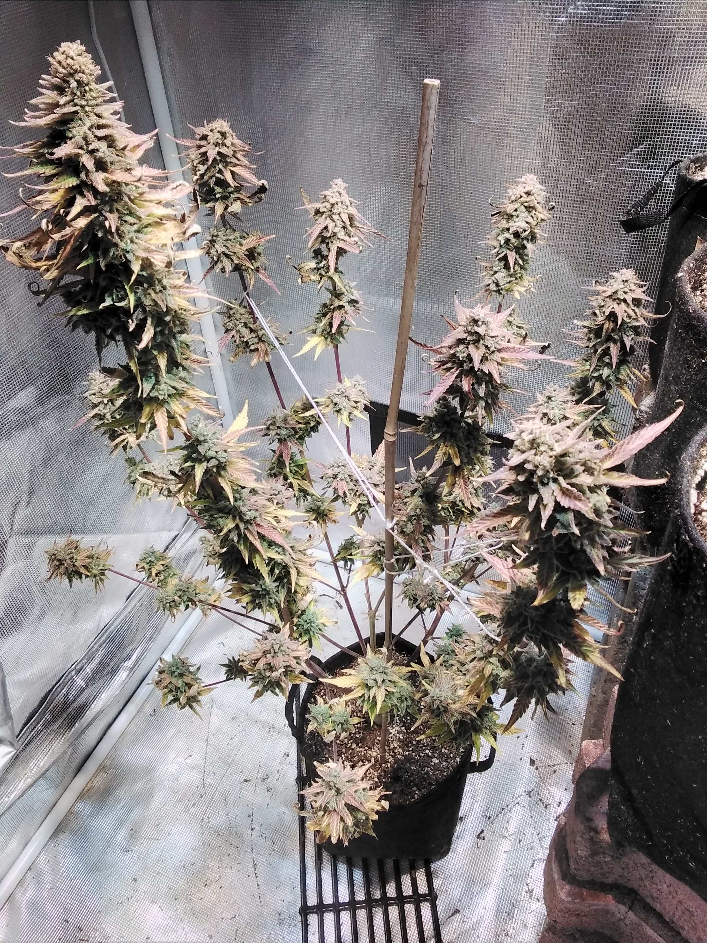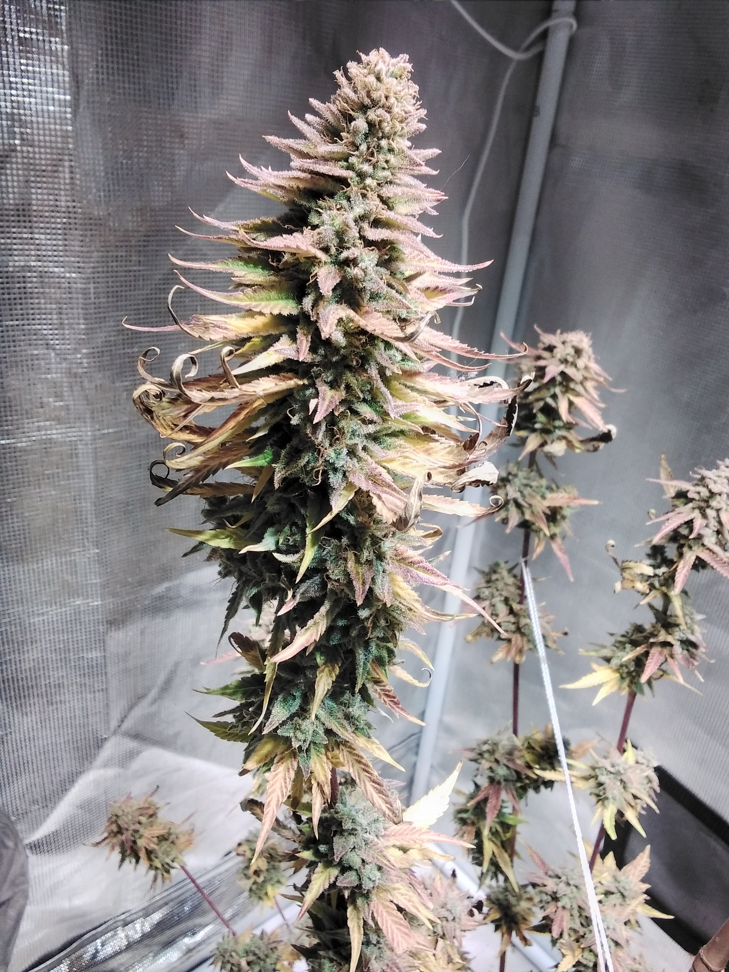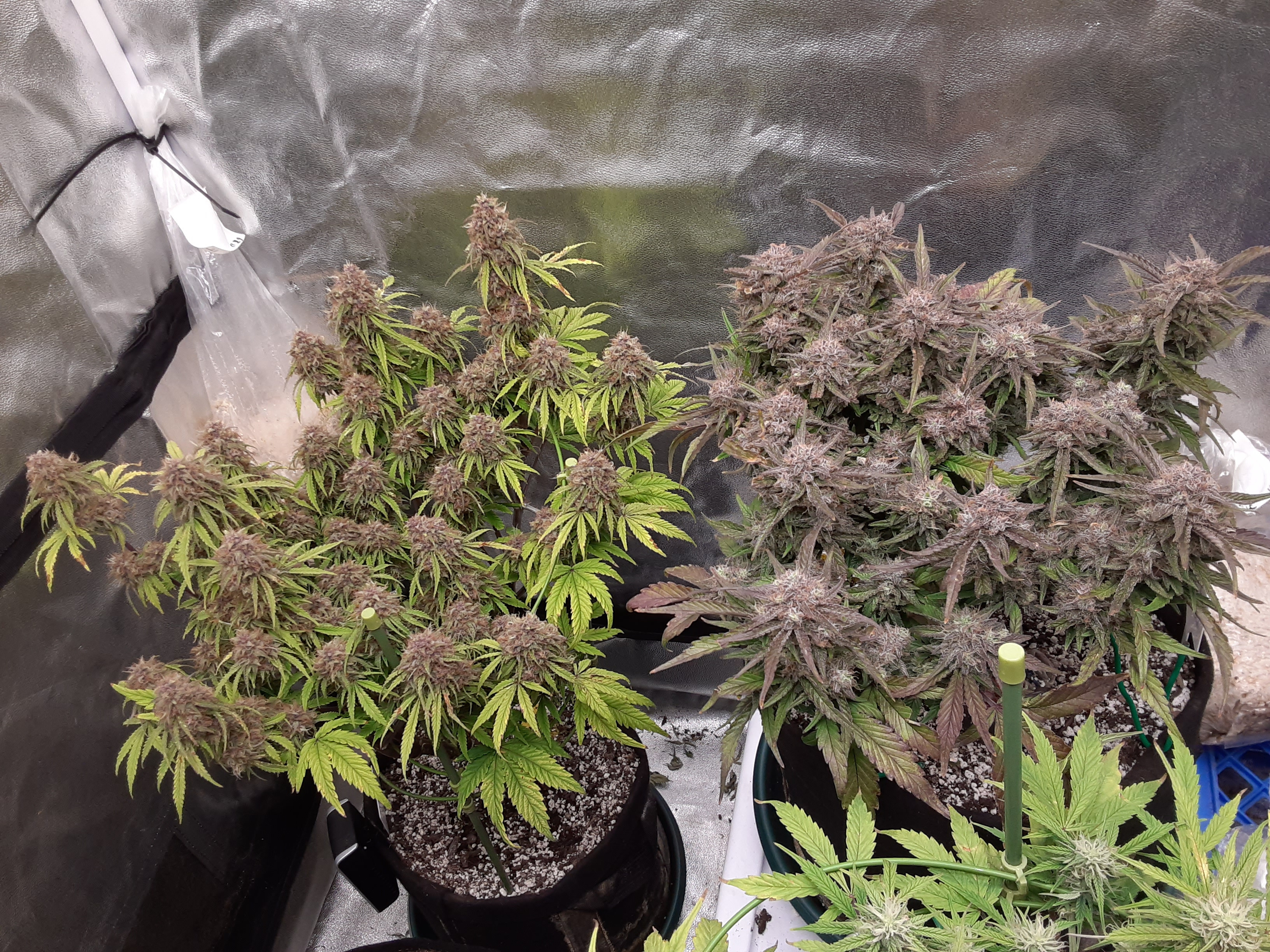 Jolly rancher gelato is photo and flowering nicely. Some purple showing. The clones are being mainline sorta. Playing around. Topped mimosa evo.