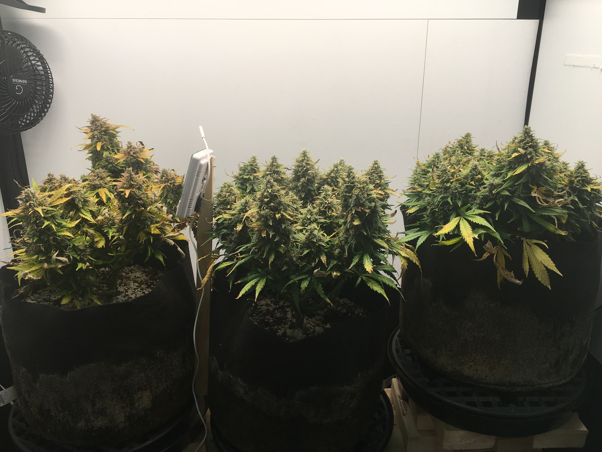 Just gave them a haircut, last day of 18/6. Cali Dream from ILGM in 7 gallon pot under a 24”x24” screen. Strawberry Lemonade and Dos Si Dos from Barney’s in 5 gallon pots