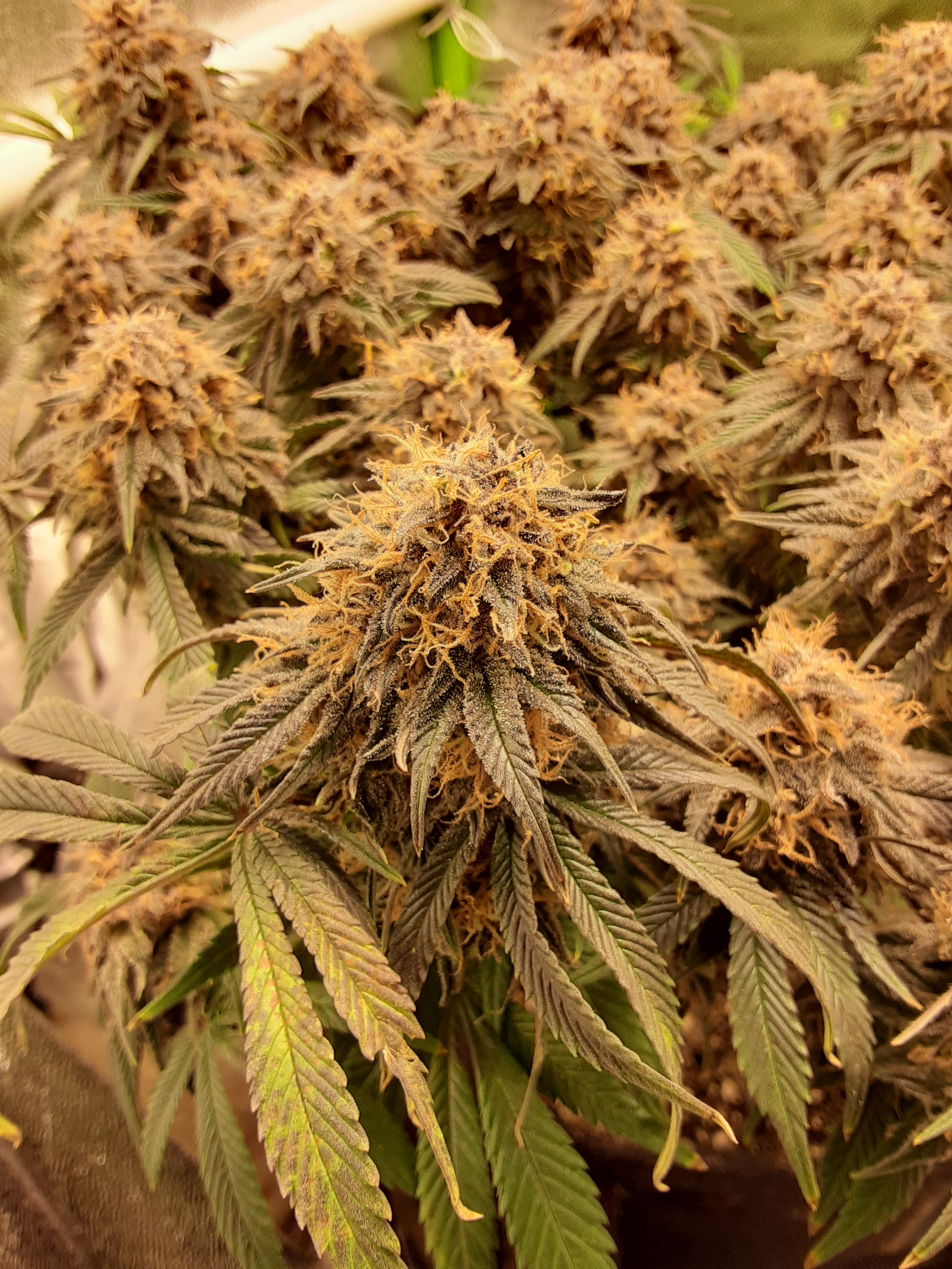 GSC auto in flower. One bud is morphing into 3. Cool lookin. Have some somango & clones x3, jolly rancher gelato clone, dos-si-dos 33 and a clone, mimosa evo, gorilla girl XL auto x4, sour diesel auto, gorilla zkittlez auto,