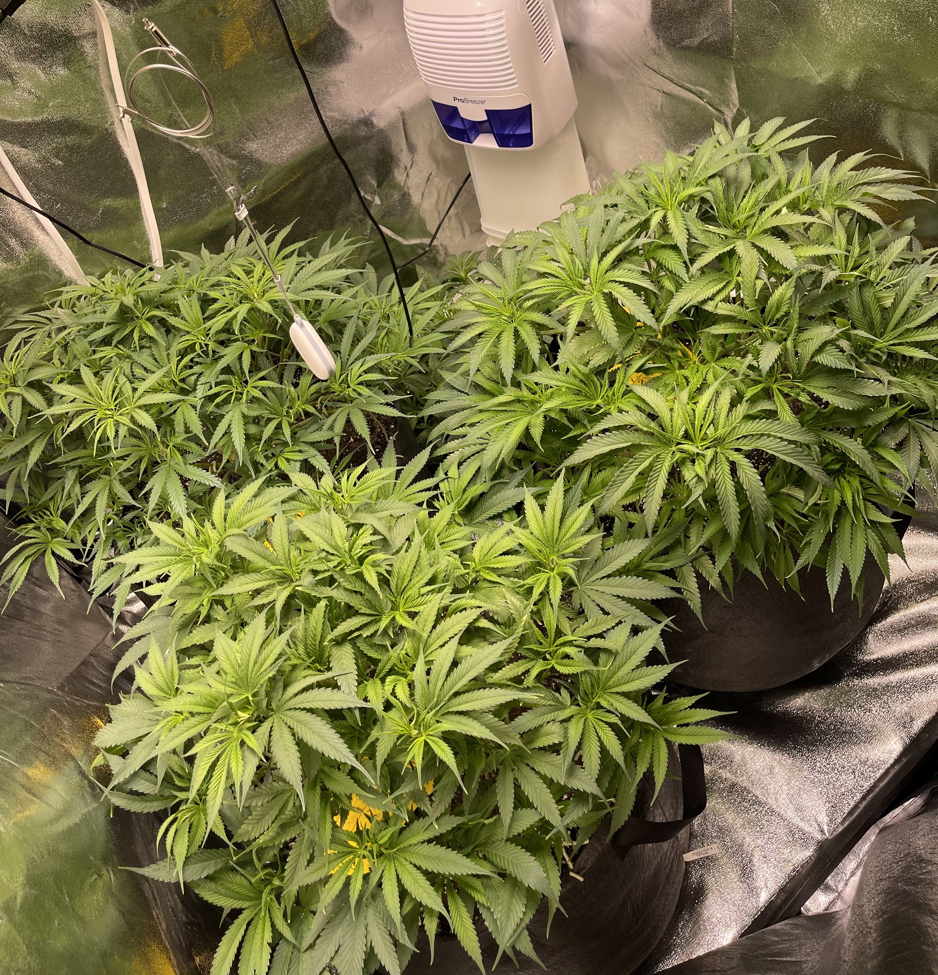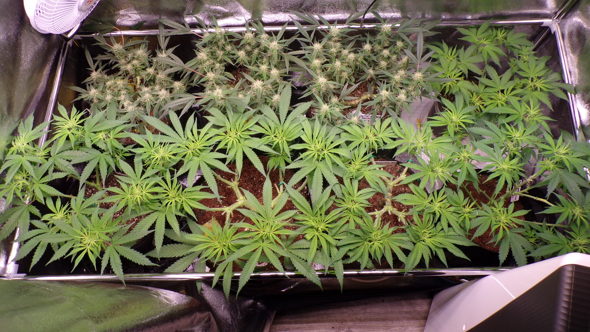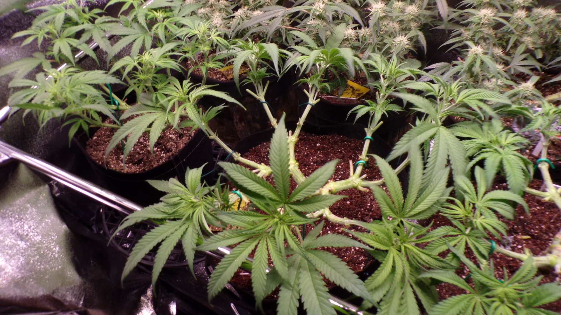 so all these mainlines worked perfect for me. i removed a few fan leaves on about all of them to help with airflow and they were blocking light . everything is packed in here. i have a trellis net for the tent that clips on to the poles. i dont know if i will use it. not yet anyway.