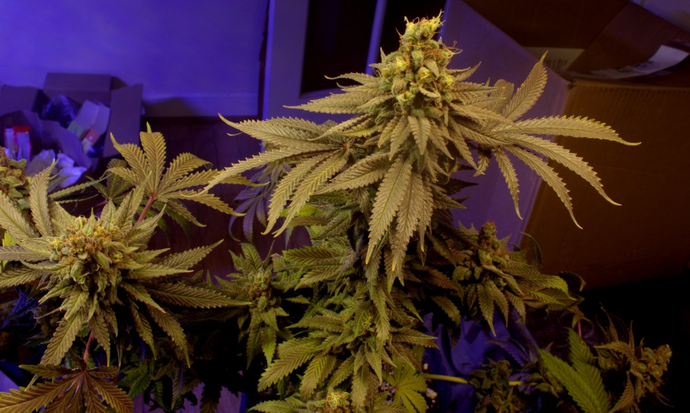 Winding down the indoor grows. This is a test cross: LIT Farms Gatorade #25 (Mother) X Darkhorse Genetics Bruce Banner (Father). It's ready to come down. The Gatorade is my favorite strain so we'll see what the Hulk adds to it. I can't find my iphone for photos so I had to use a 35mm with no flash.
