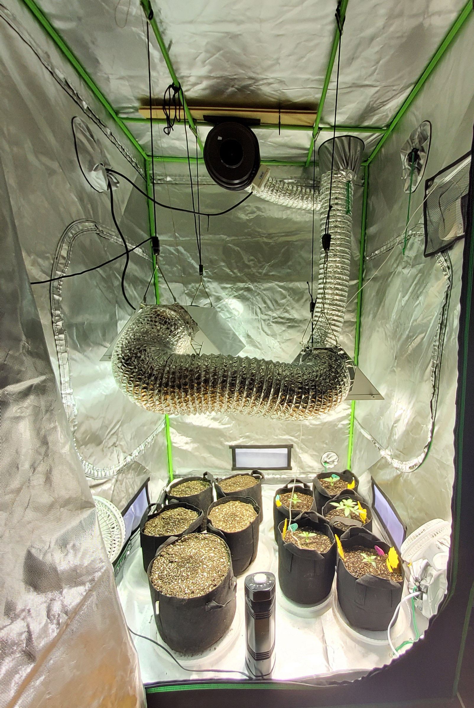 It's a never ending cycle of love, next batch is in. Just harvested 5 Zkittles autos at 70 days, 30% amber. Super fast! I was really pleased. This round is 3 Gelato, 1 purple kush, 5 banana kush and 1 mystery seed I found in a previous GG#4 autoflower. Click image for larger version