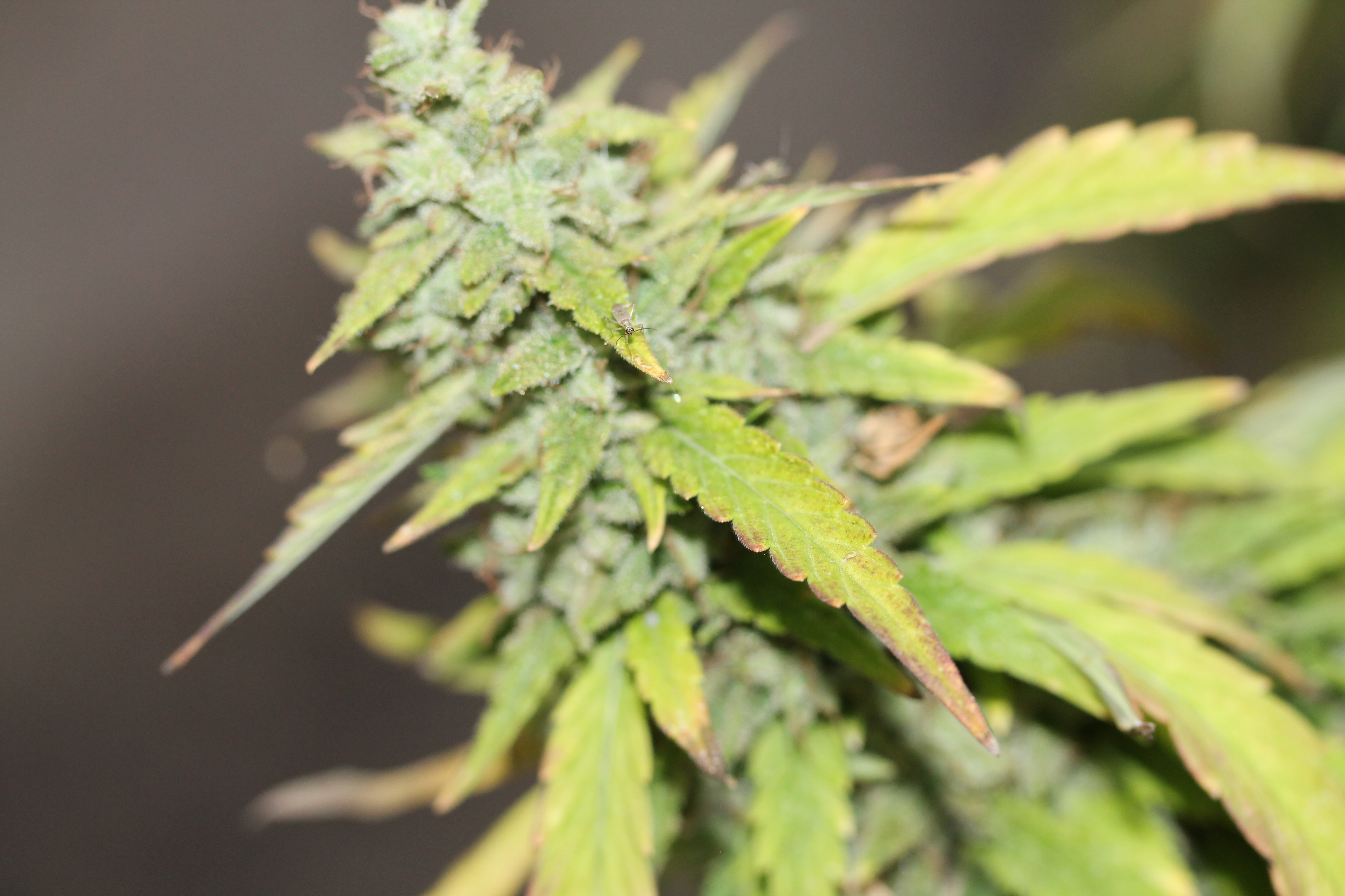 Next is my GG#4 who has a mag. deficency i believe but her buds are filling in great i think i may give her a Epsome salts drink/flush see what happens with that. Been giving unsulferated molasses 1xwk with all of them. Last pic is floopy peanut butter breath. She's got the spindly branches barley able to hold up the buds/colas. I got her tied to stakes all around her in the pot. She's just a wild child been that way the whole grow. Hard to move her do to those branches break from flopping, but it's what i gotta do to get them finished off.