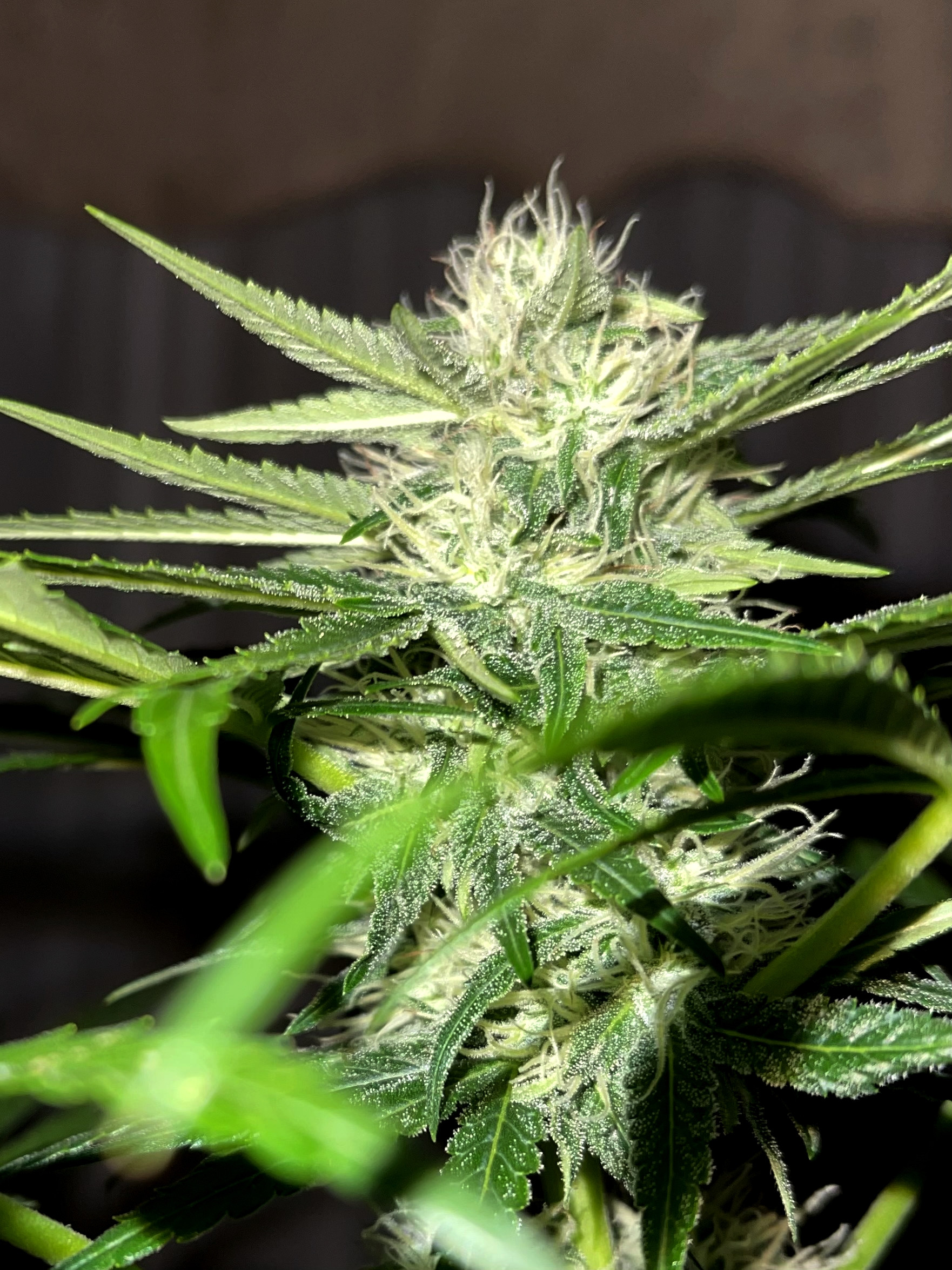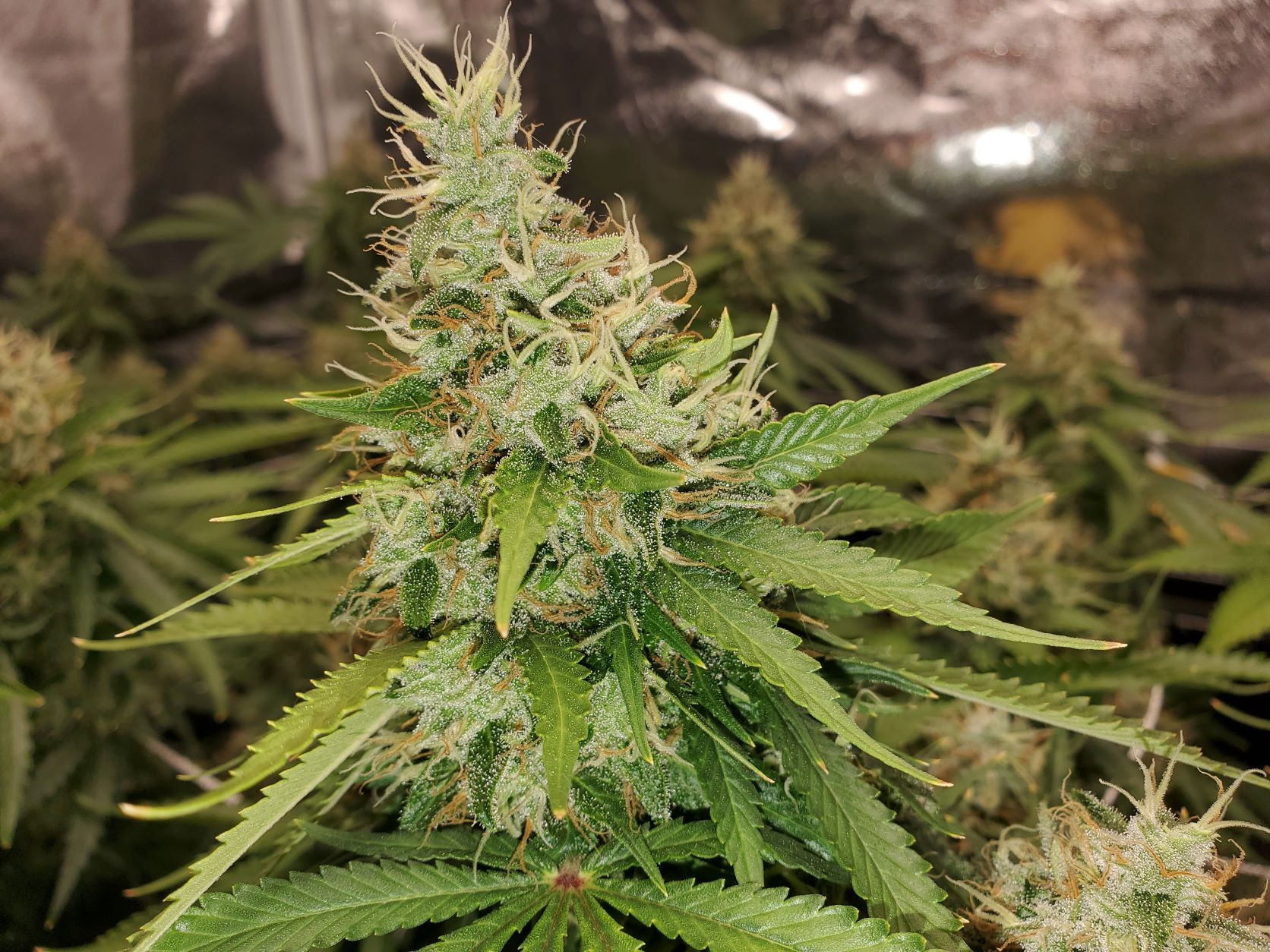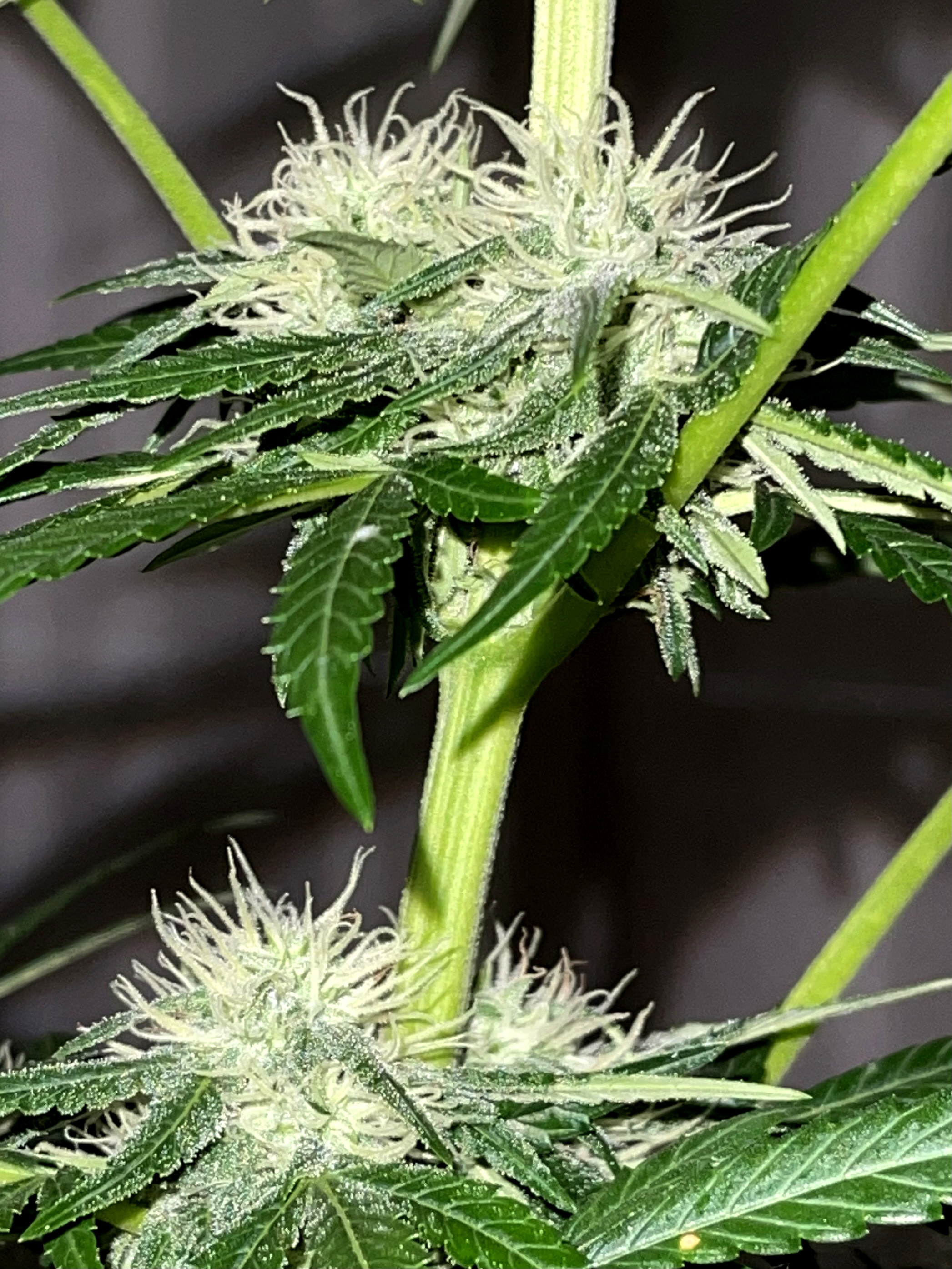 ID:	541282 6 weeks and counting, buds are falling over so tonight when the lights are on I will have to string them up, they are already nice and frosty, and getting frostier everyday!