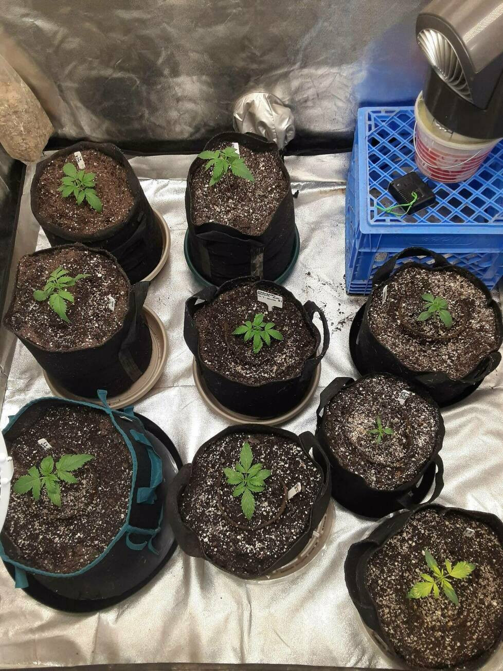 everything got switched around. seedlings transplanted and in veg. flipped the older ones in veg to flower and took fresh clones while i did a defoliation.