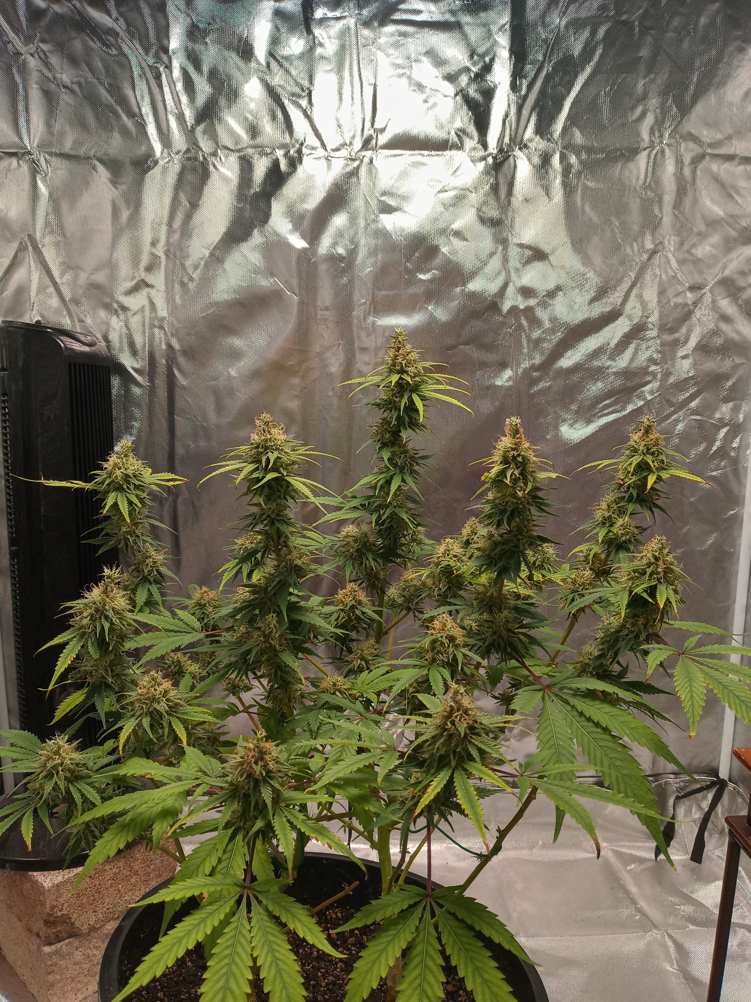 I hope i can grow as good ya`ll one day, my yield sucks.My last grow (my 4th) i only ended up 2oz from two plants that were clones of gorilla breath. This grow i started with 4 plants two Blue dream, a Flo and a San Angelo.The San Angelo was short (10in compared to the Blue dream at 35in) and only had stems coming from one side.out it went. The Flo hermied 2 1/2 weeks into flower.out it went.I switched into flower on 10/6/21 And that left me with the 2 Blue dream. but they have taken up the whole tent now. Hoping for a high yield this time.these two have been fun to grow, topped the big one twice and it was like it didnt hesitate in growth at all. It took a week for my gorilla breath to recover. I just wish i new more and had done these BD better.