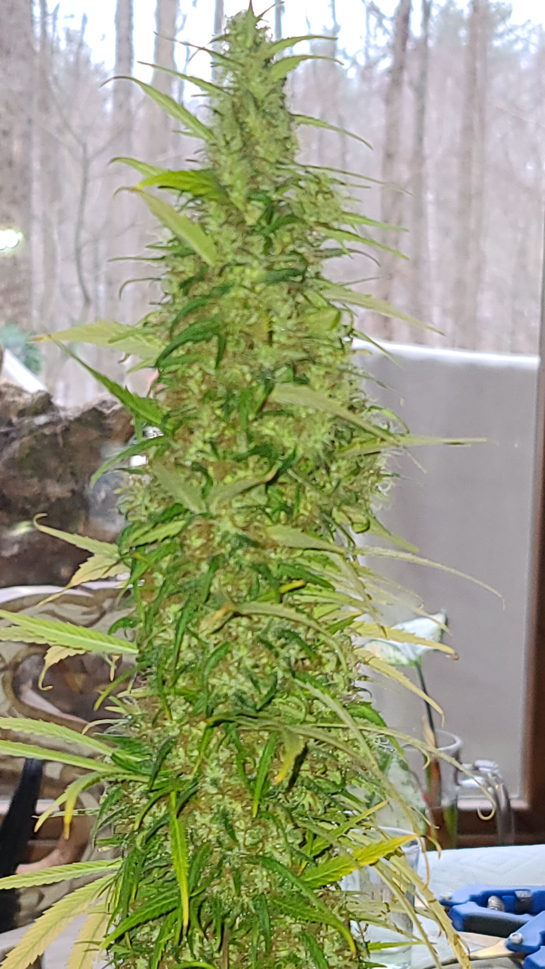 The 5 smaller pots are bag seed of unknown origin, but we like the effects of the smoke. (2nd time growing this) the 2 larger pots are Periwinkle Pie from Green Point Seeds, these 2 were started a week after the bag seeds. Expecting to harvest late January 2022.