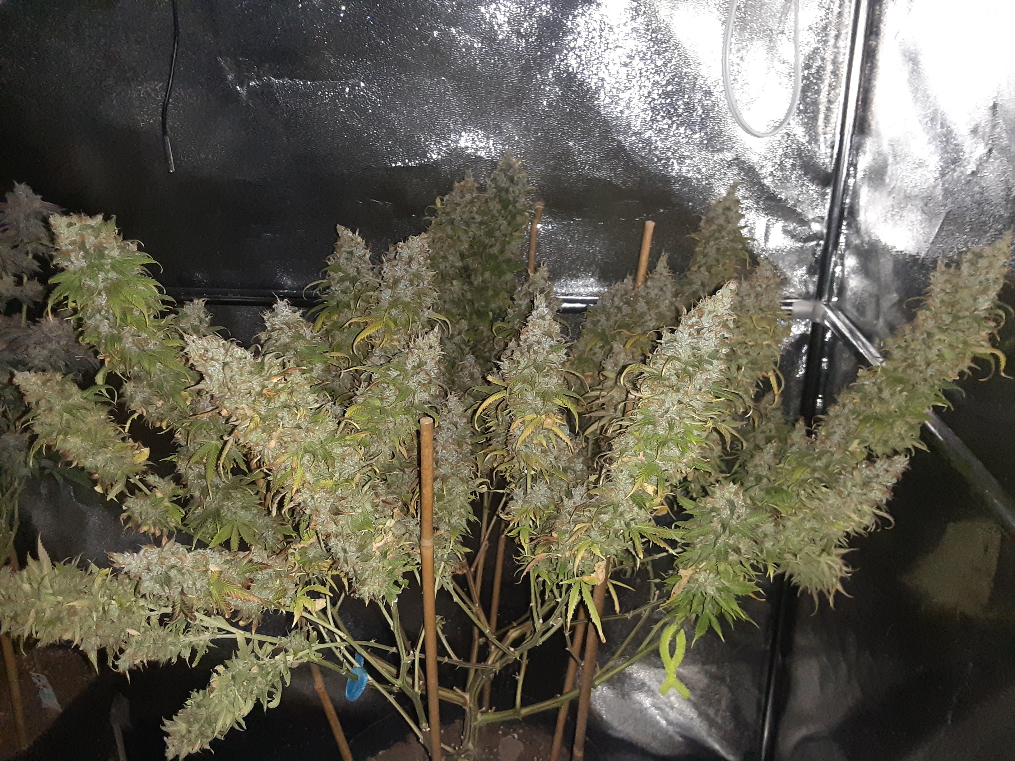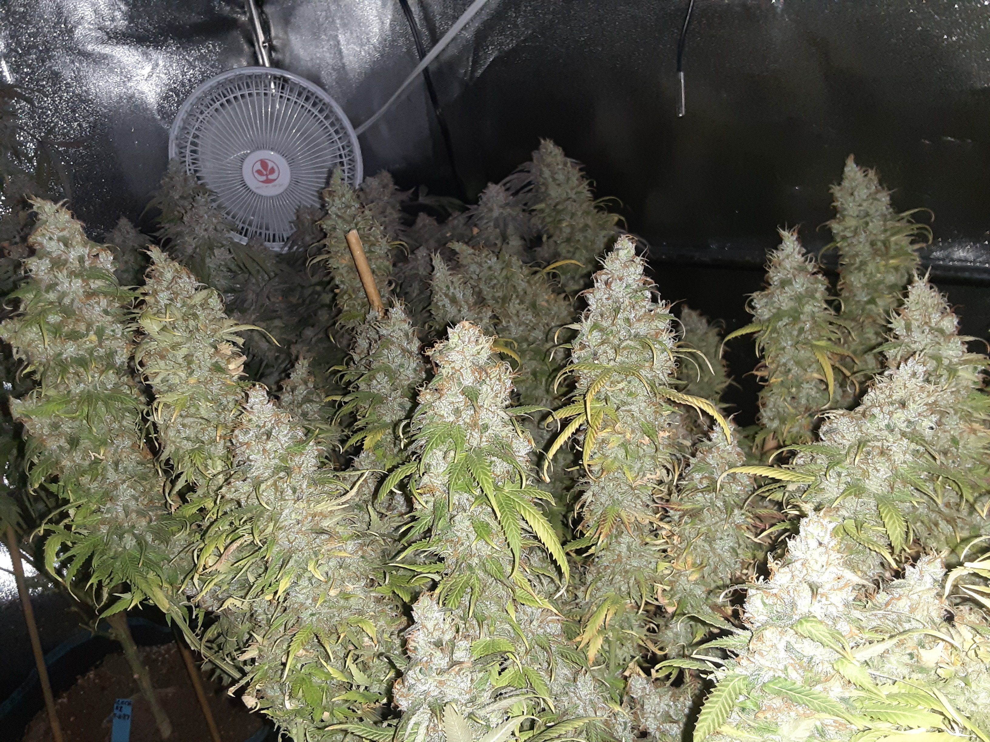 Happy New year GWE! Harvested two ladies last week. Cinderella 99 and Black Amnesia Haze. Trim jail wasnt too bad..chopped most of the lower growth during veg/early flower. Still took a couple of evenings though ffs. Dried and jarred, 8.7 ounces between the two. Strawberry Banana and a Auto Banana Kush still to come. Some amber but not there yet. Not gonna hit 1lb this grow. Unless the banana Kush auto can really preform at harvest. Fingers crossed!
