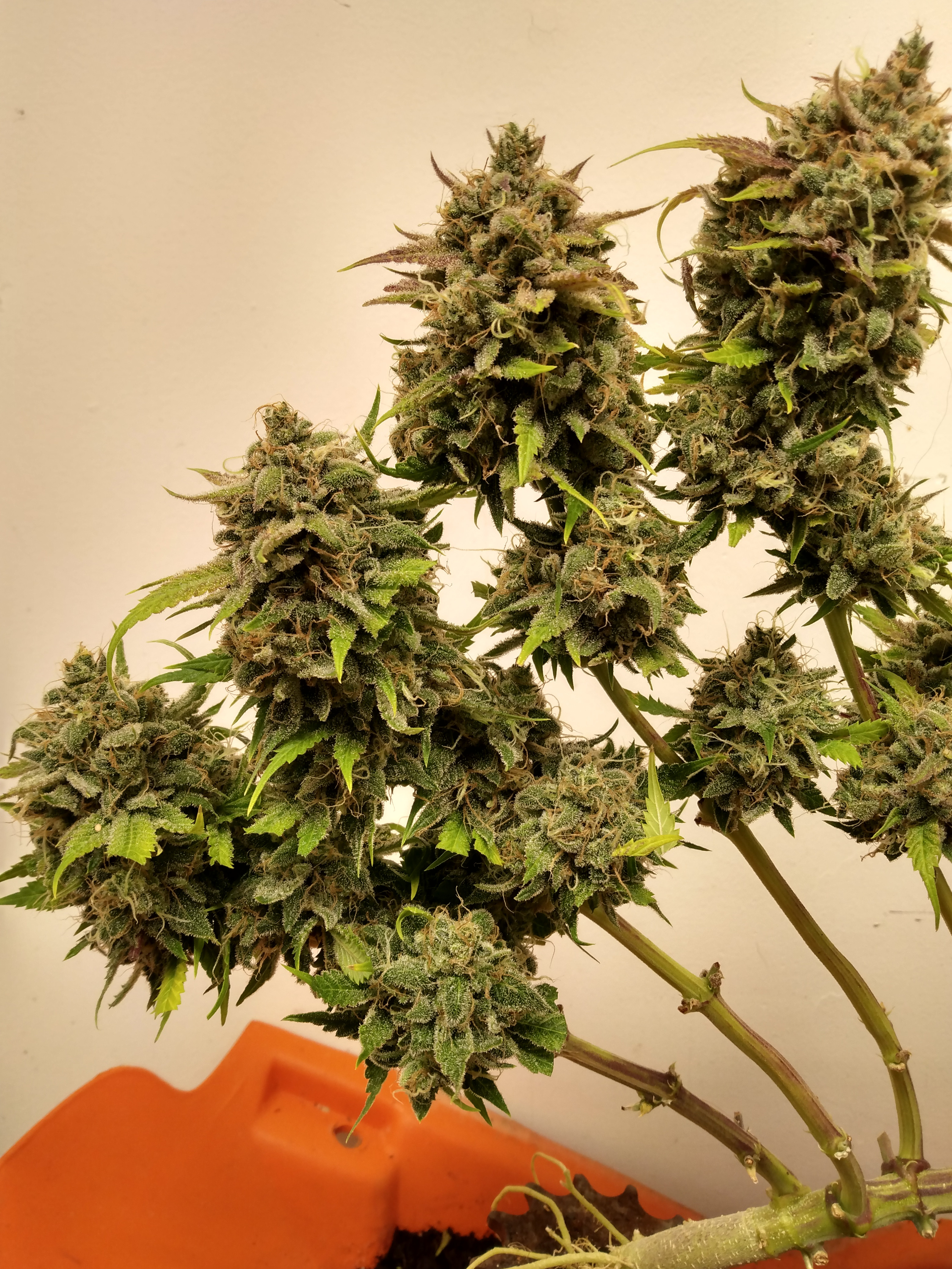 My sole surviver Blue Dreams about 4-5 weeks into bloom. Pretty proud of her. Starting to get some lovely blue leaves and everything is incredibly frosty. You touch a bud and it wants to stick to your finger. Plenty of new flower growth i just noticed today. In another 30 days she'll be as lovely as ever.2 PhotosPeace. Love. Mushrooms and Weed.