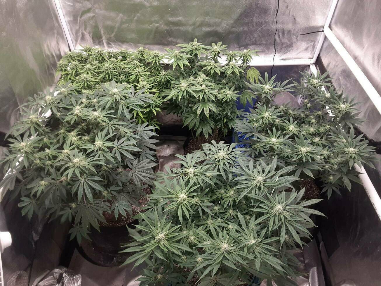 Northern Lights auto on the left at 37 days from sprout. Bushy but short, starting to look like it wants to flower. Wedding Cake auto on the right at 42 days from sprout, flowering for a little more than a week. Hope the stretch is over. Topped and still close to 3 ft.