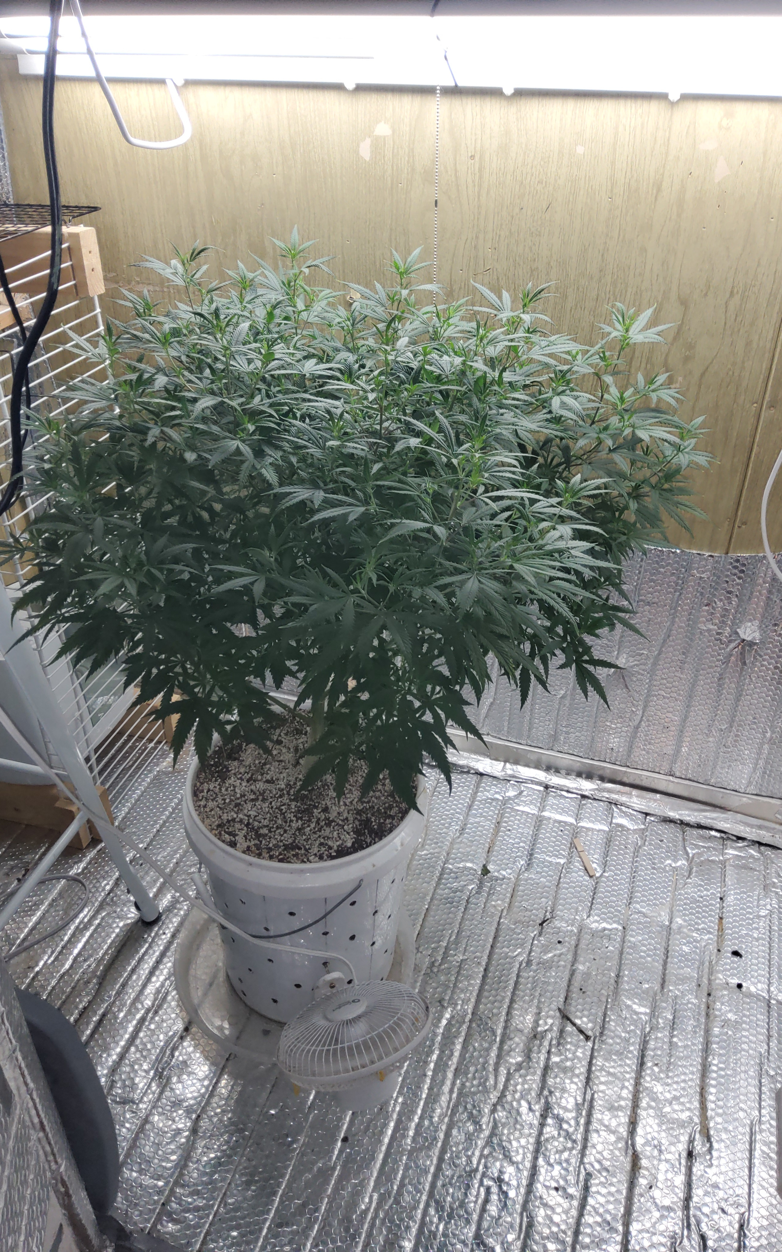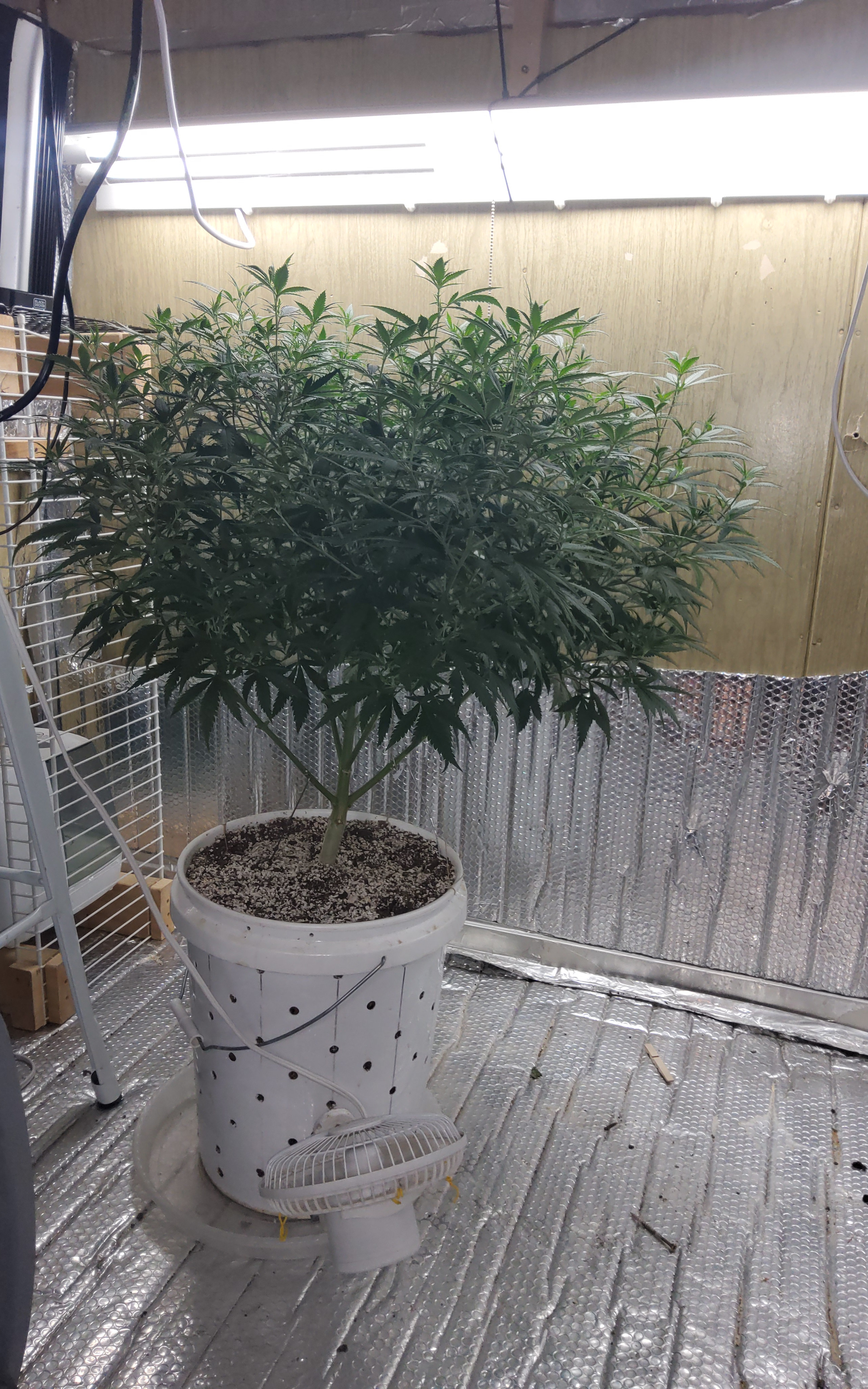 Topped her once and did some minor LST. She is now almost 4 ' wide. I have her in my 8x4 tent now and the HPS is about as high as it will go. She's making me nervous. I will defoliate again week 2-3 flower.